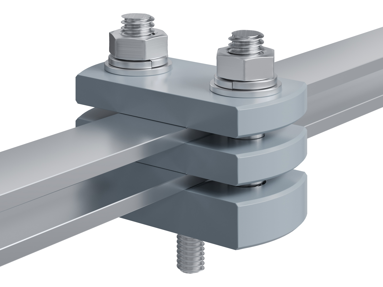 Schienenträger aus Aluminium zur Befestigung und Sicherung von Stromschienen aus Aluminium