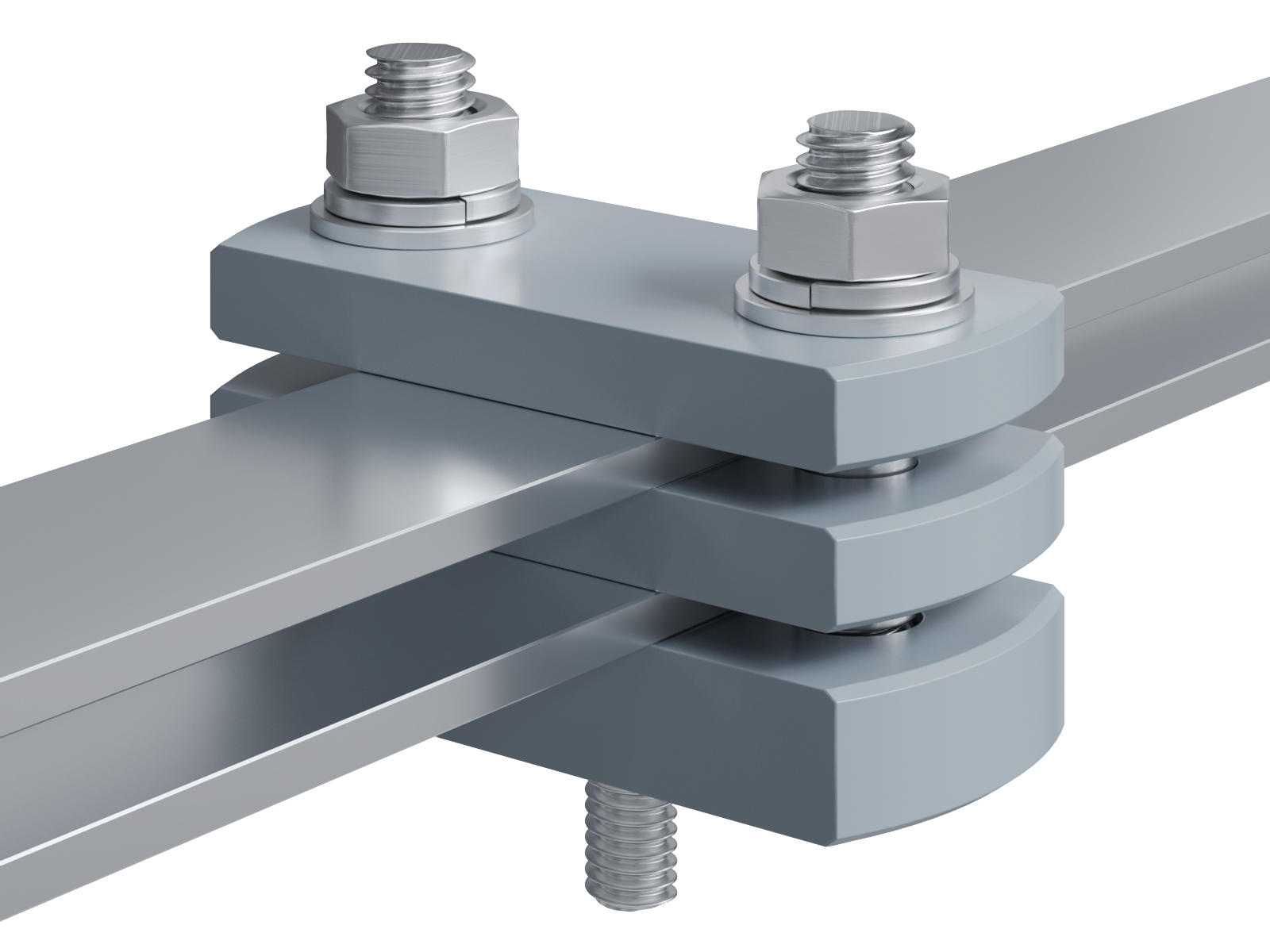 Schienenträger aus Aluminium zur Befestigung und Sicherung von Stromschienen aus Aluminium