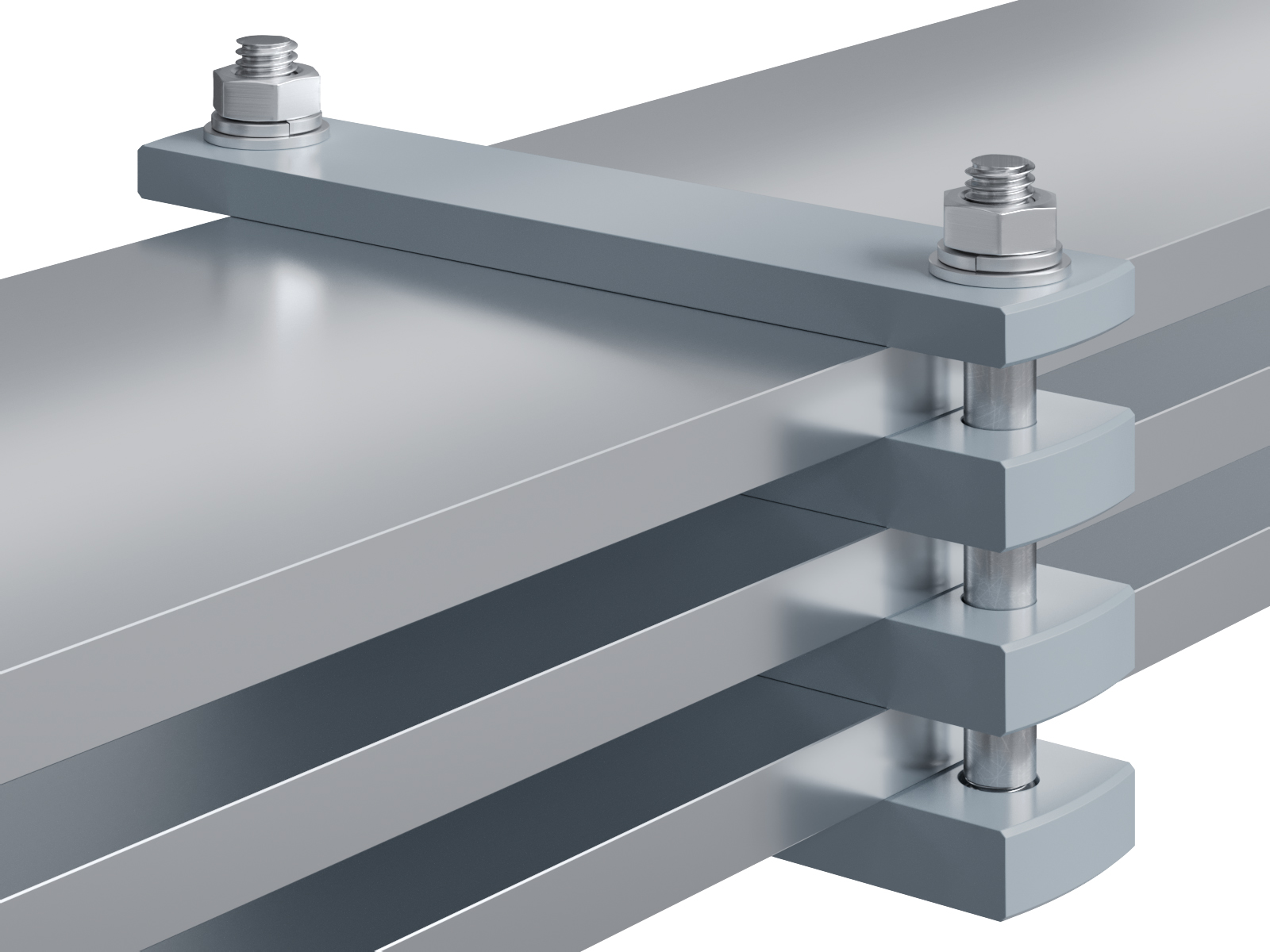 Schienenträger aus Aluminium zur Befestigung und Sicherung von Stromschienen aus Aluminium