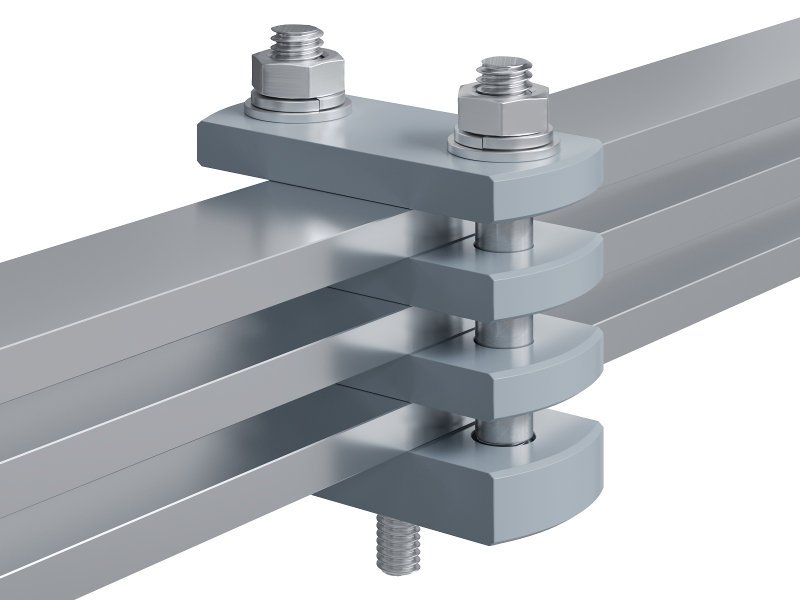Schienenträger aus Aluminium zur Befestigung und Sicherung von Stromschienen aus Aluminium