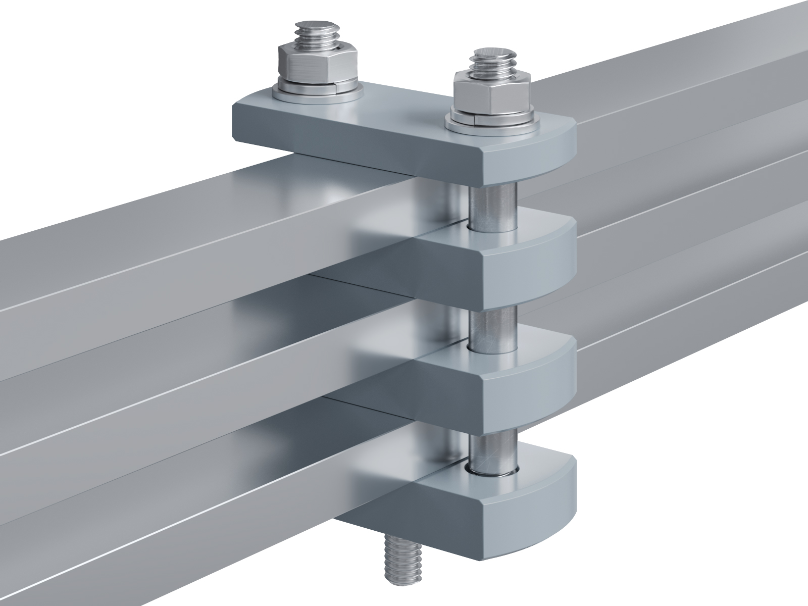 Schienenträger aus Aluminium zur Befestigung und Sicherung von Stromschienen aus Aluminium