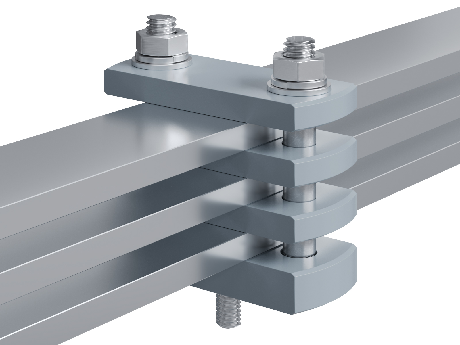 Schienenträger aus Aluminium zur Befestigung und Sicherung von Stromschienen aus Aluminium