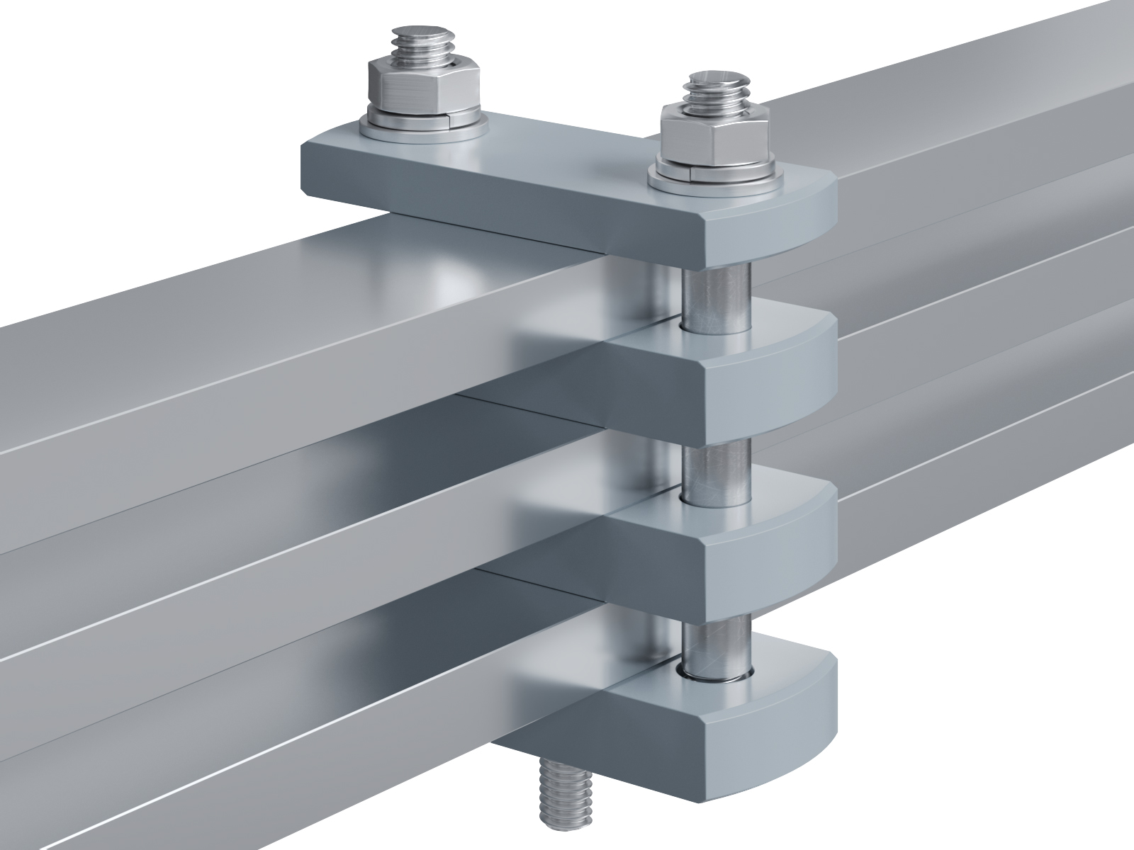 Schienenträger aus Aluminium zur Befestigung und Sicherung von Stromschienen aus Aluminium