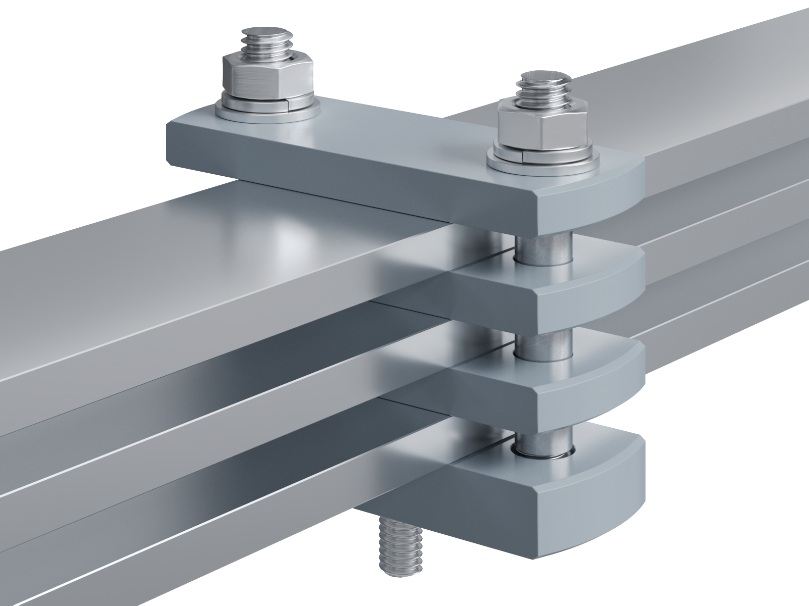 Schienenträger aus Aluminium zur Befestigung und Sicherung von Stromschienen aus Aluminium