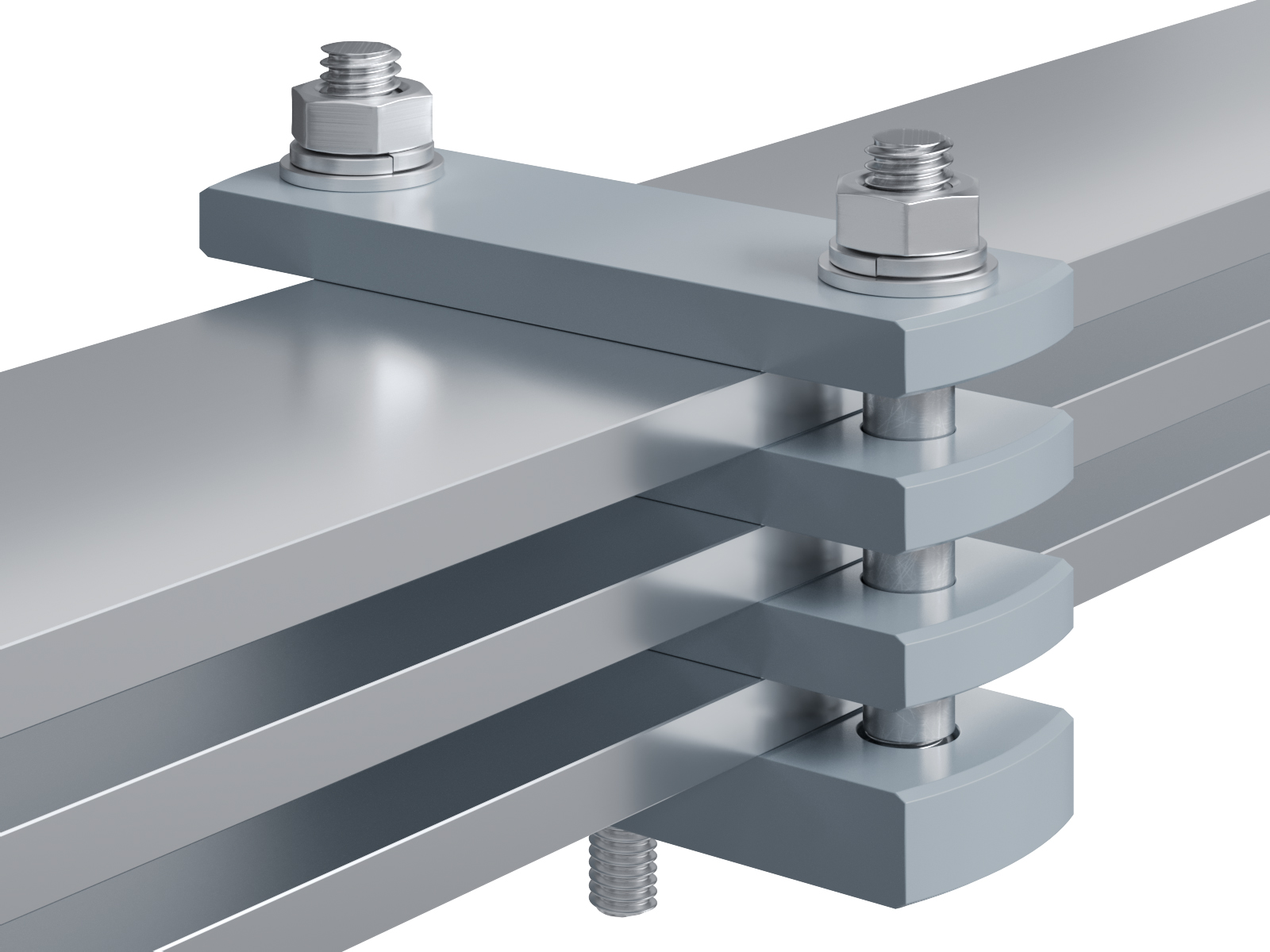 Schienenträger aus Aluminium zur Befestigung und Sicherung von Stromschienen aus Aluminium