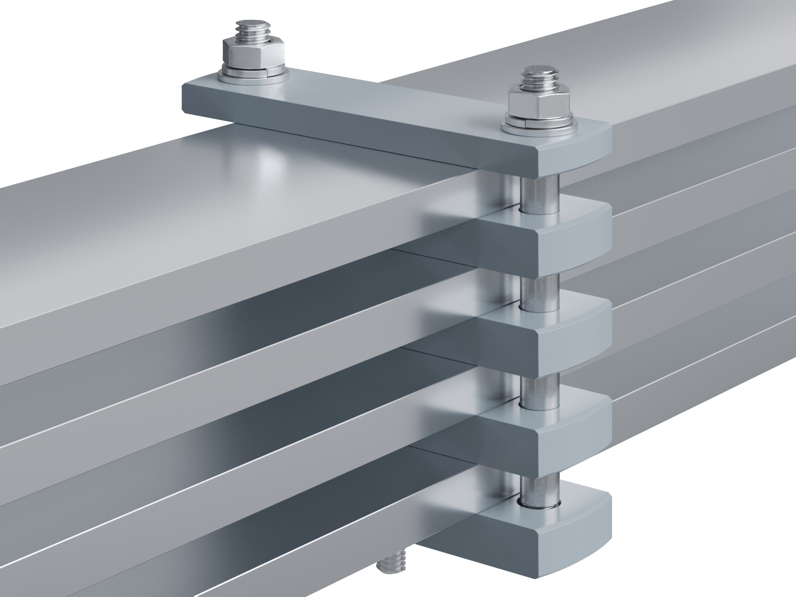 Schienenträger aus Aluminium zur Befestigung und Sicherung von Stromschienen aus Aluminium