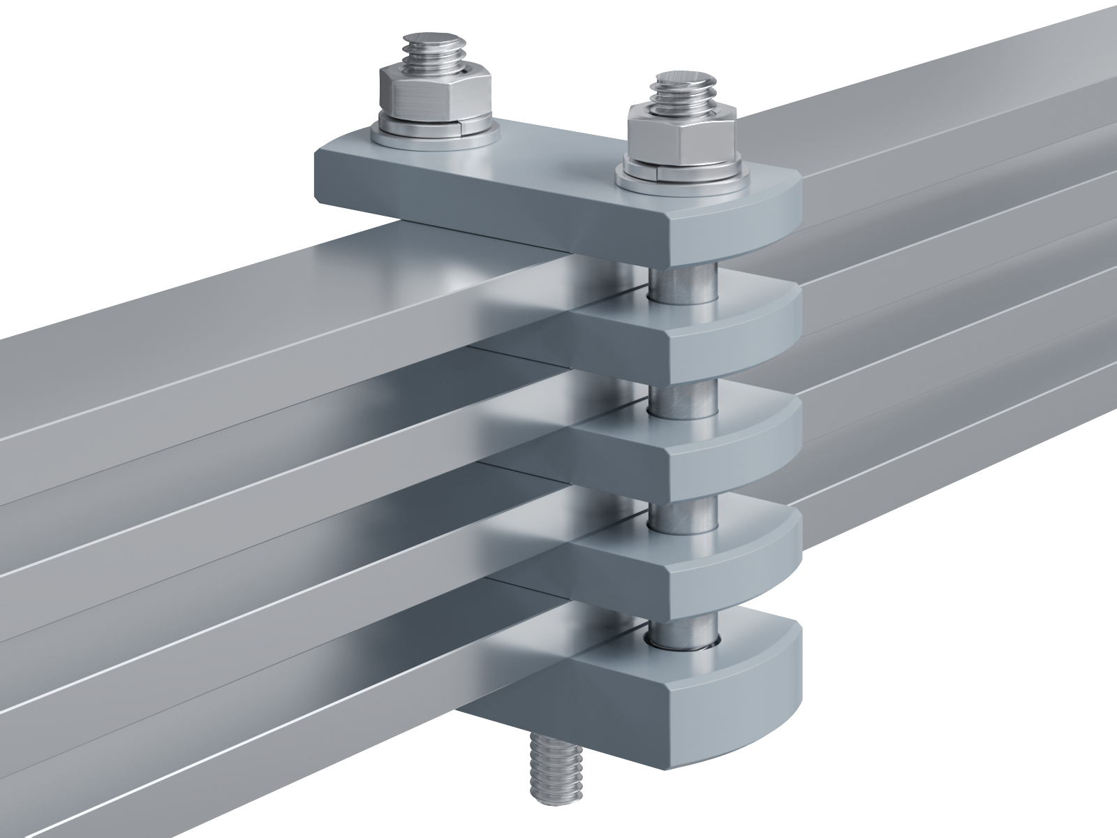 Schienenträger aus Aluminium zur Befestigung und Sicherung von Stromschienen aus Aluminium