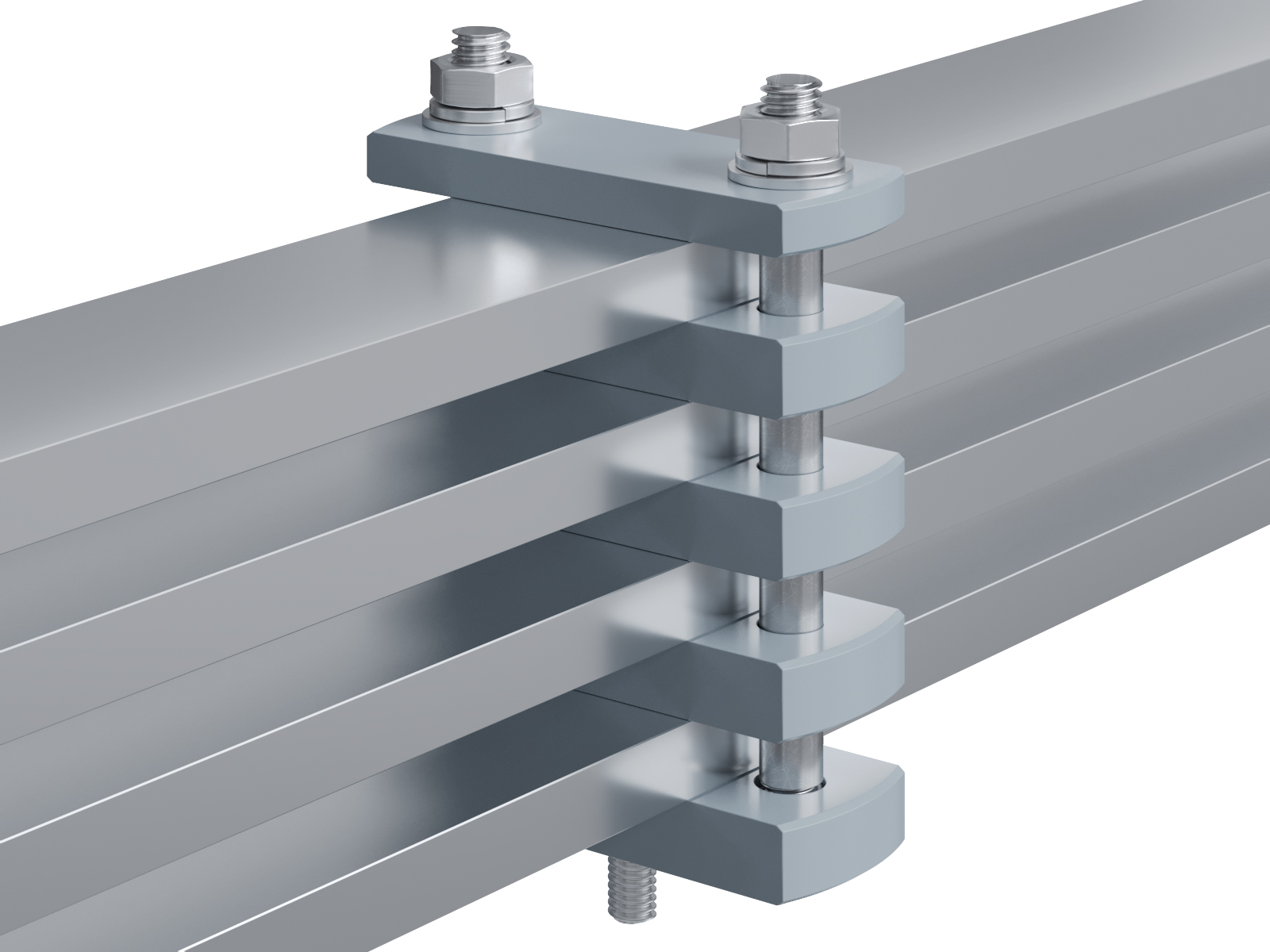 Schienenträger aus Aluminium zur Befestigung und Sicherung von Stromschienen aus Aluminium