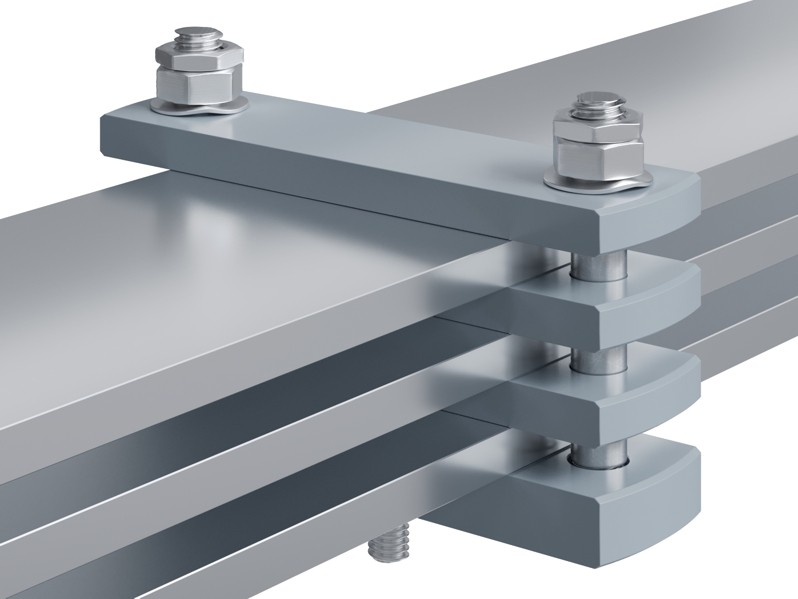 Schienenträger aus Aluminium zur Befestigung und Sicherung von Stromschienen aus Aluminium