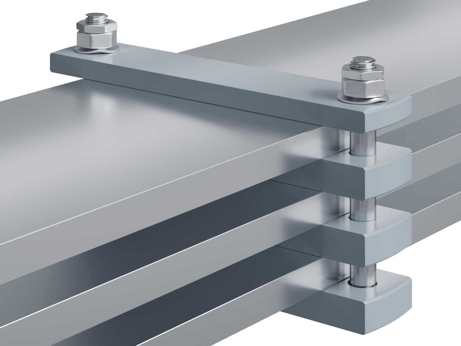 Schienenträger aus Aluminium zur Befestigung und Sicherung von Stromschienen aus Aluminium