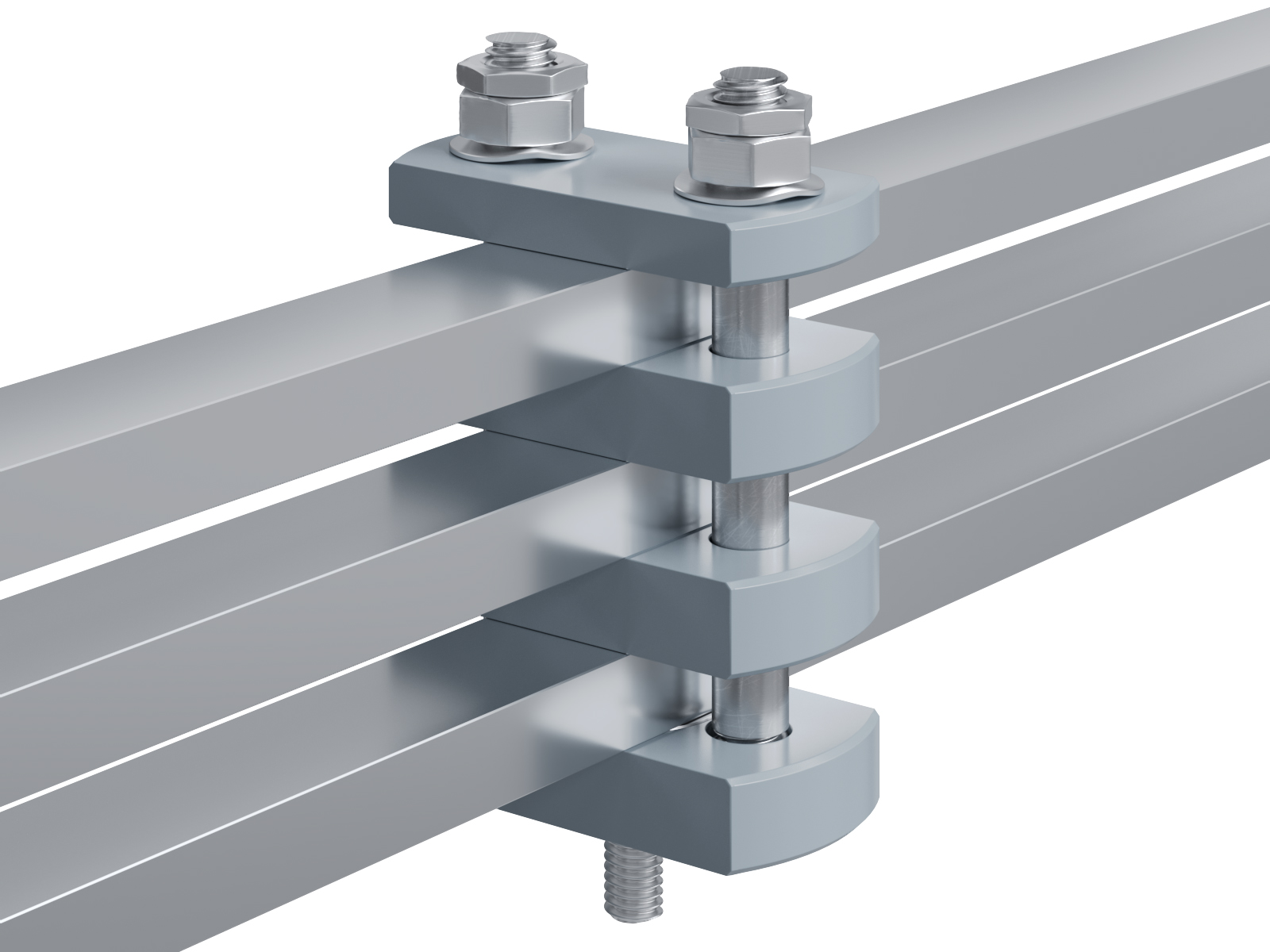 Schienenträger aus Aluminium zur Befestigung und Sicherung von Stromschienen aus Aluminium