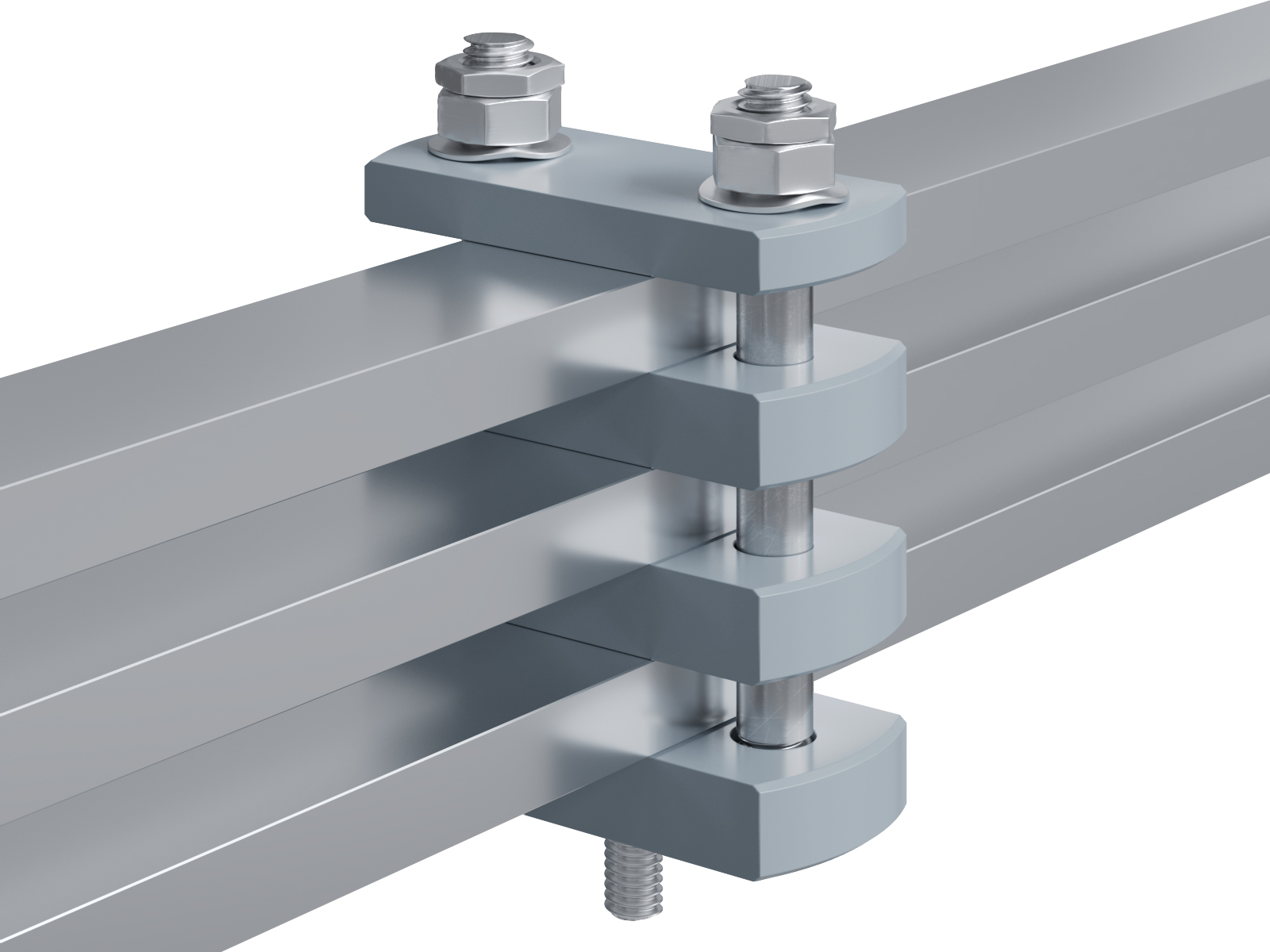 Schienenträger aus Aluminium zur Befestigung und Sicherung von Stromschienen aus Aluminium