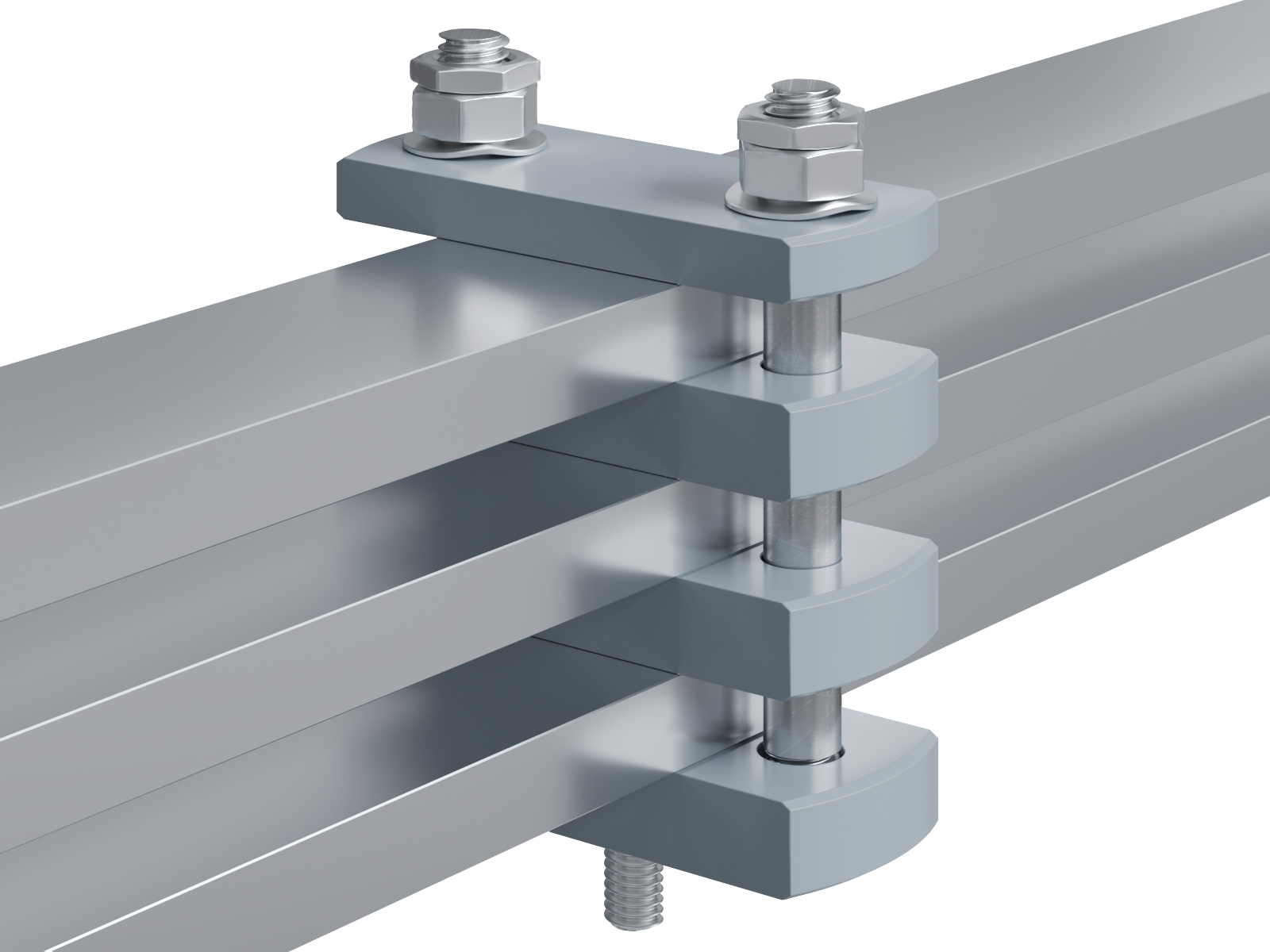 Schienenträger aus Aluminium zur Befestigung und Sicherung von Stromschienen aus Aluminium