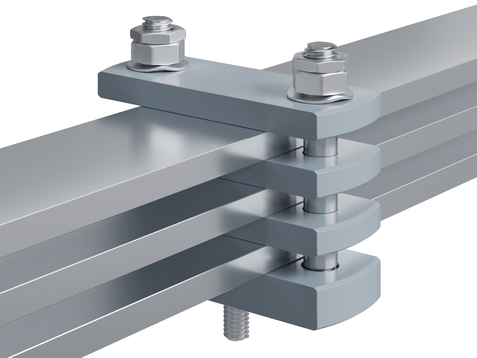 Schienenträger aus Aluminium zur Befestigung und Sicherung von Stromschienen aus Aluminium