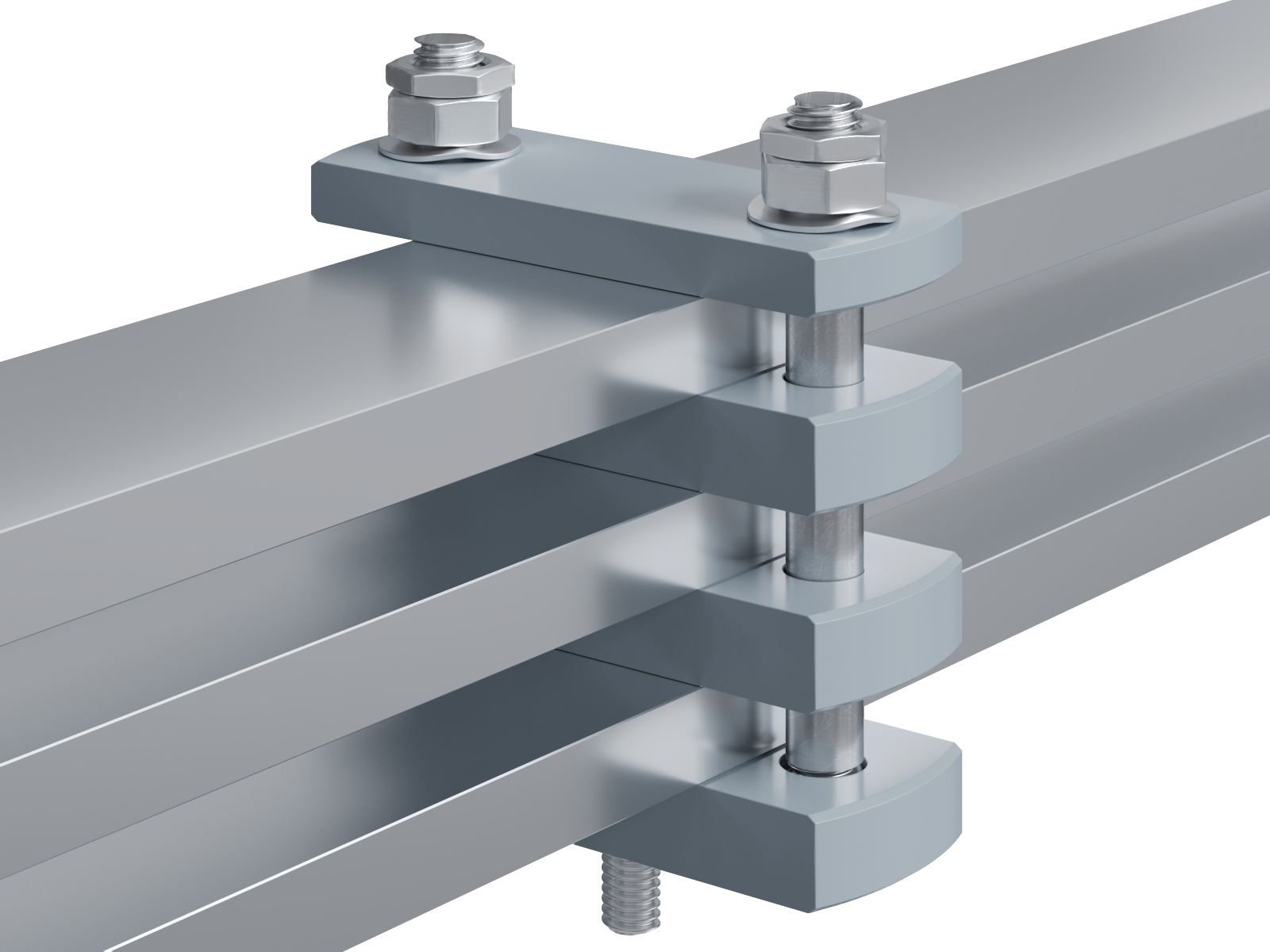 Schienenträger aus Aluminium zur Befestigung und Sicherung von Stromschienen aus Aluminium