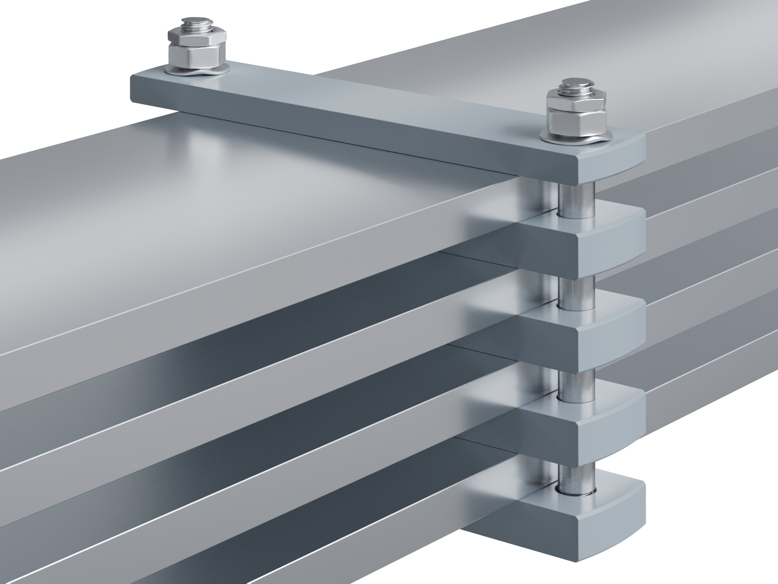 Schienenträger aus Aluminium zur Befestigung und Sicherung von Stromschienen aus Aluminium