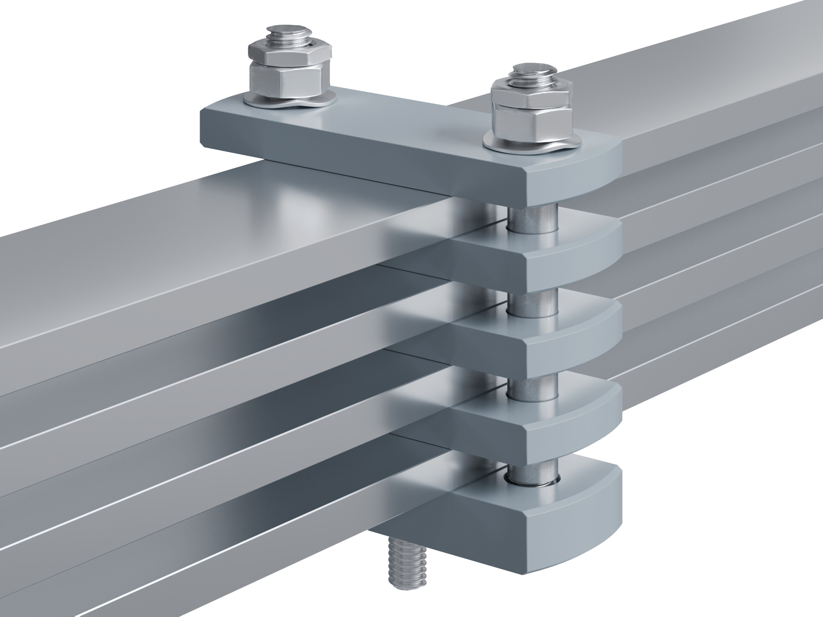 Schienenträger aus Aluminium zur Befestigung und Sicherung von Stromschienen aus Aluminium