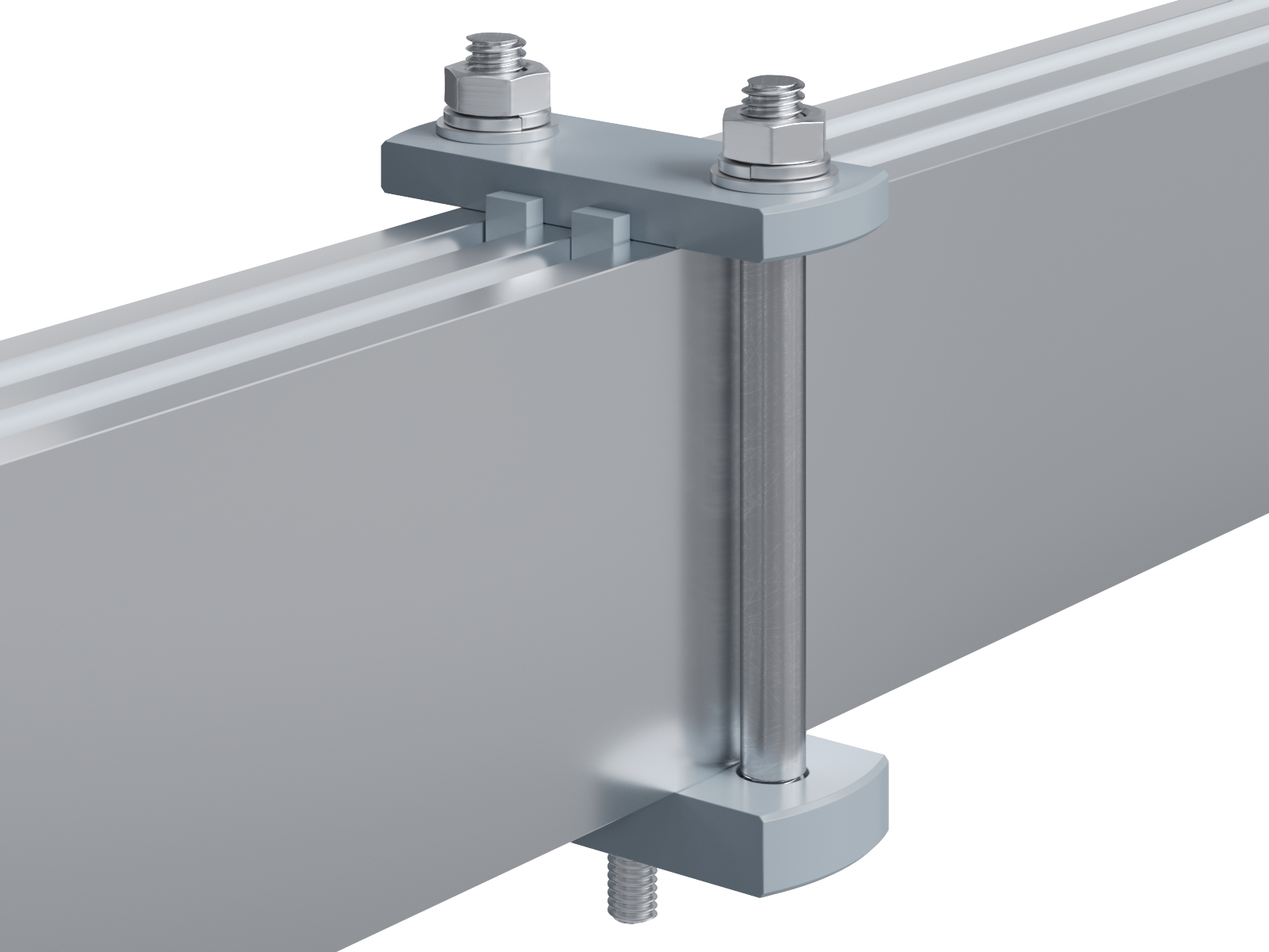 Schienenträger aus Aluminium zur Befestigung und Sicherung von Stromschienen aus Aluminium