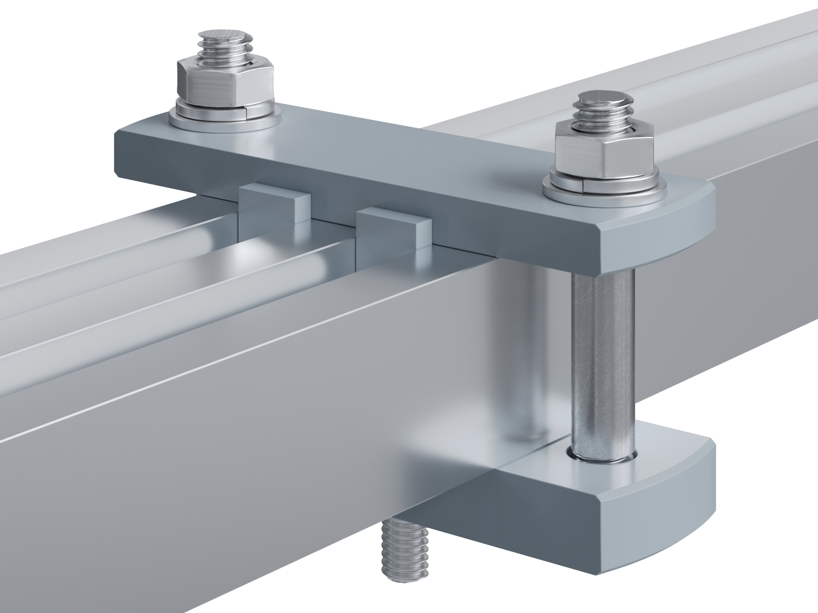 Schienenträger aus Aluminium zur Befestigung und Sicherung von Stromschienen aus Aluminium