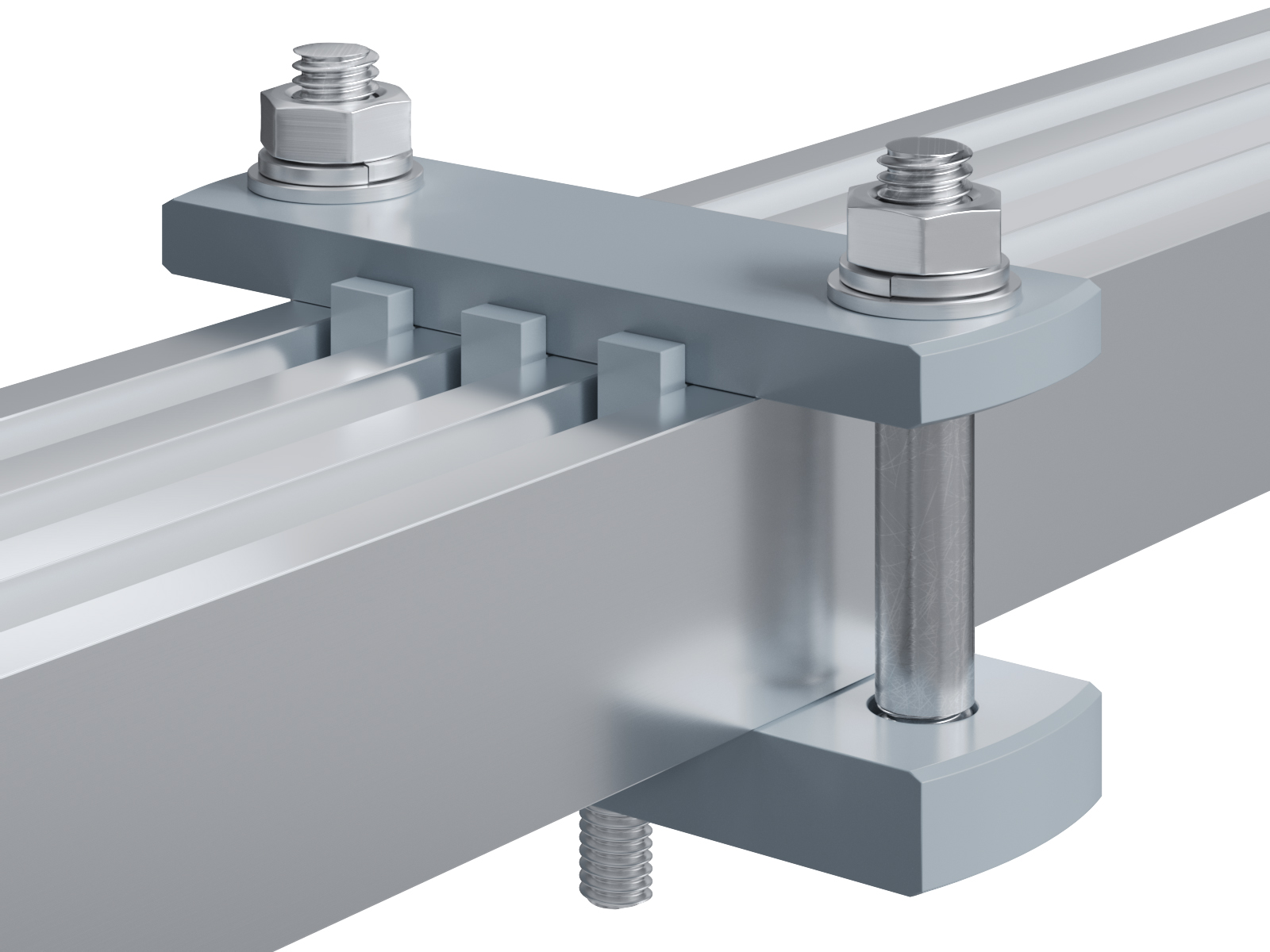 Schienenträger aus Aluminium zur Befestigung und Sicherung von Stromschienen aus Aluminium