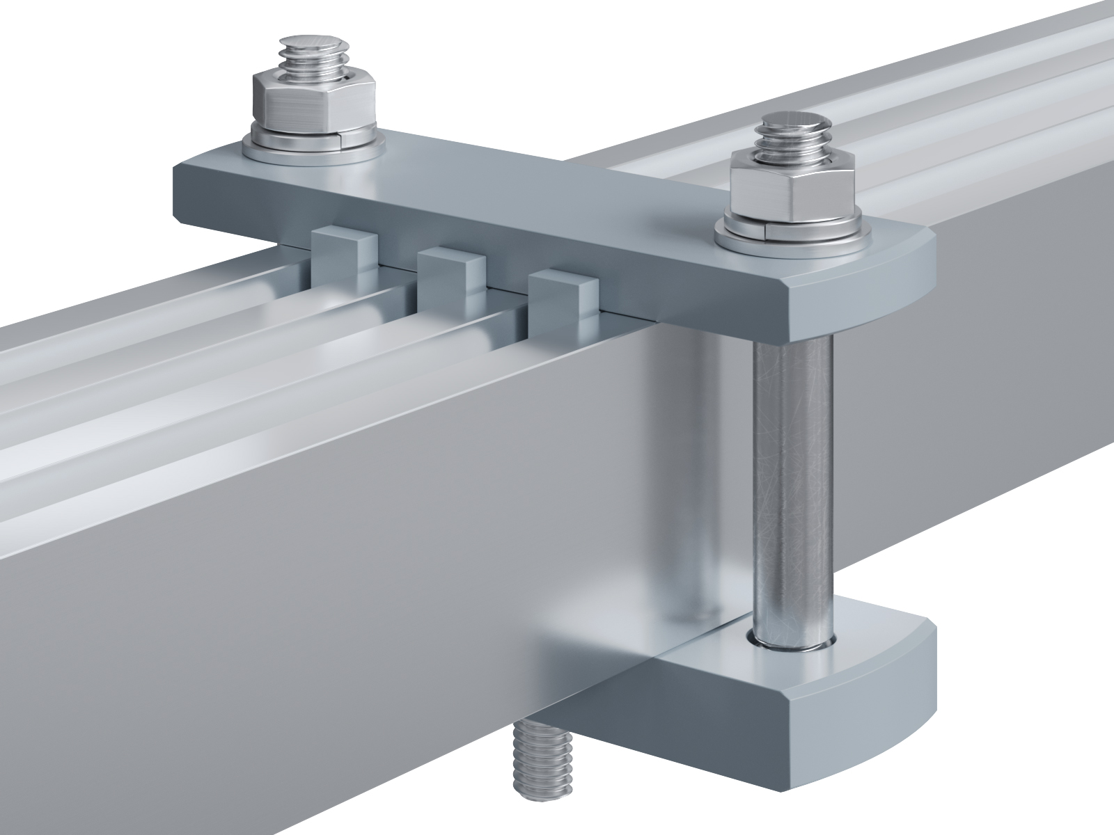Schienenträger aus Aluminium zur Befestigung und Sicherung von Stromschienen aus Aluminium