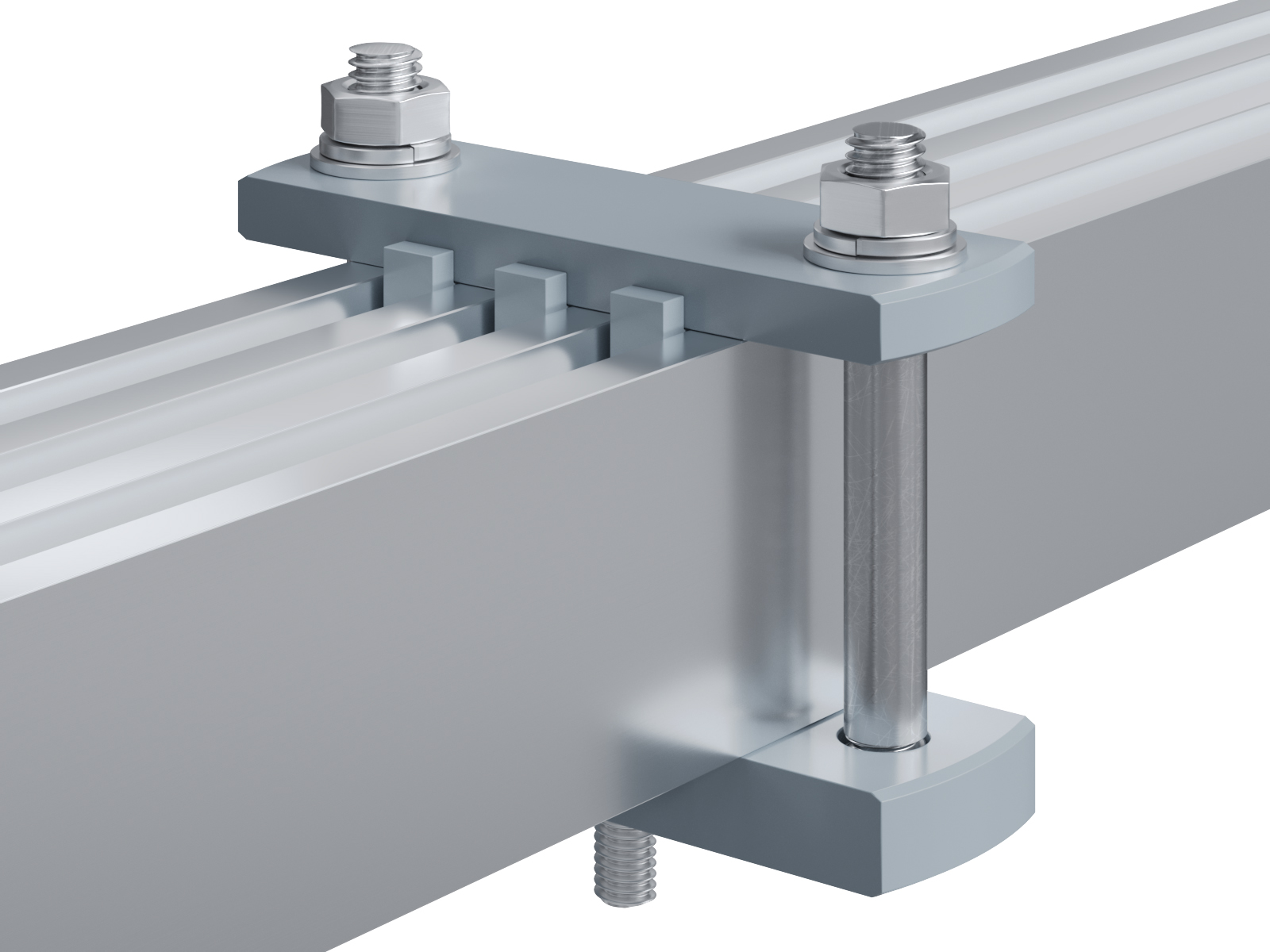 Schienenträger aus Aluminium zur Befestigung und Sicherung von Stromschienen aus Aluminium