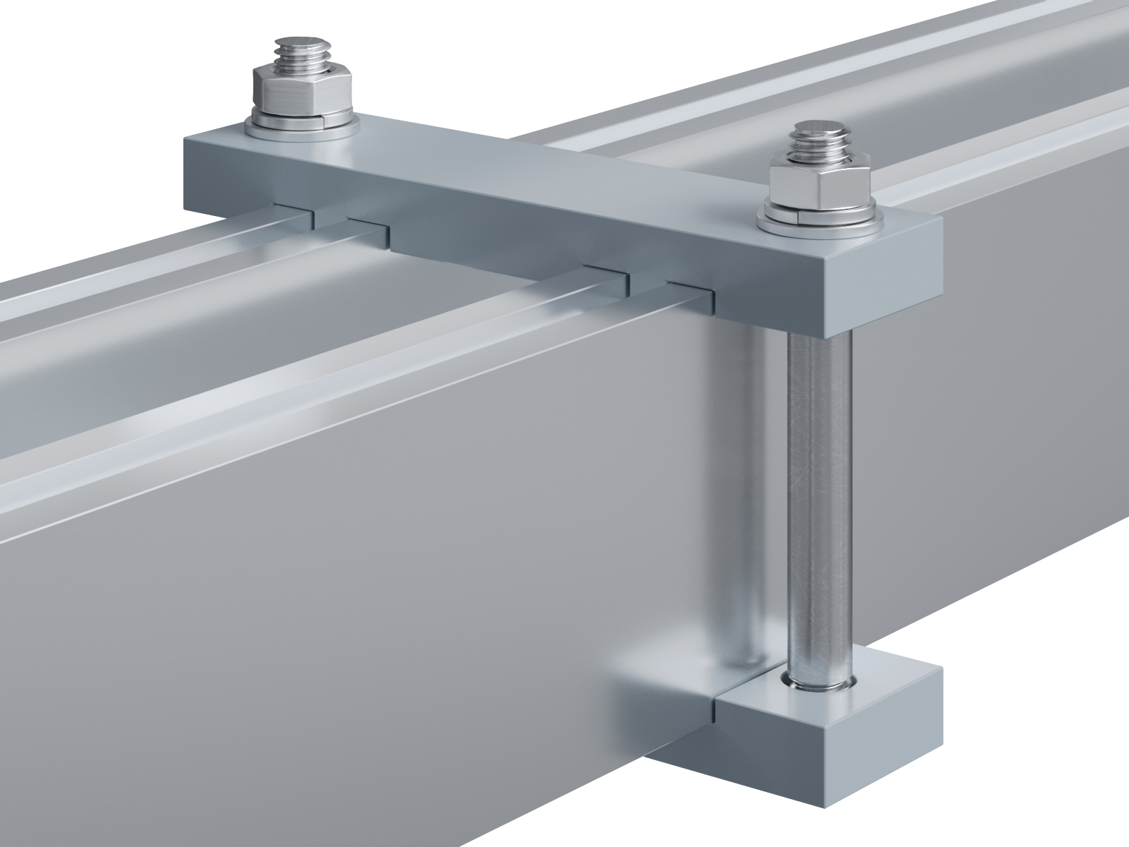 Schienenträger aus Aluminium zur Befestigung und Sicherung von Stromschienen aus Aluminium