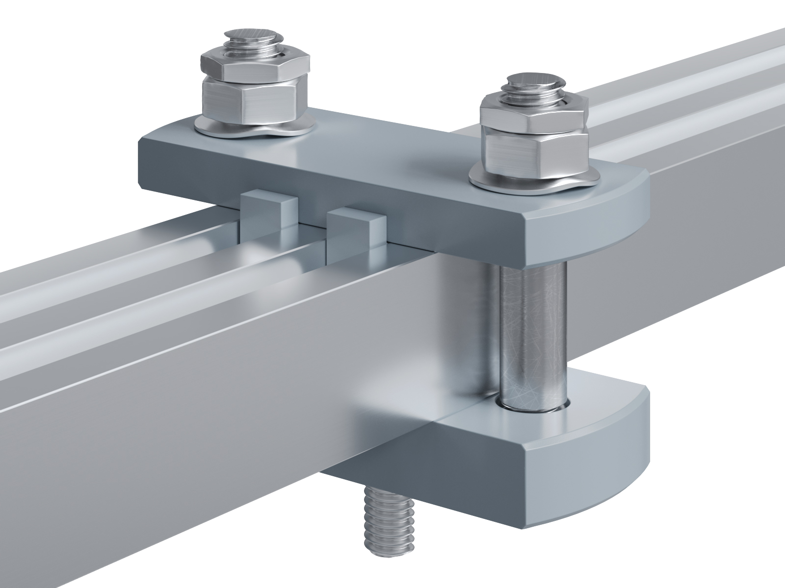 Schienenträger aus Aluminium zur Befestigung und Sicherung von Stromschienen aus Aluminium