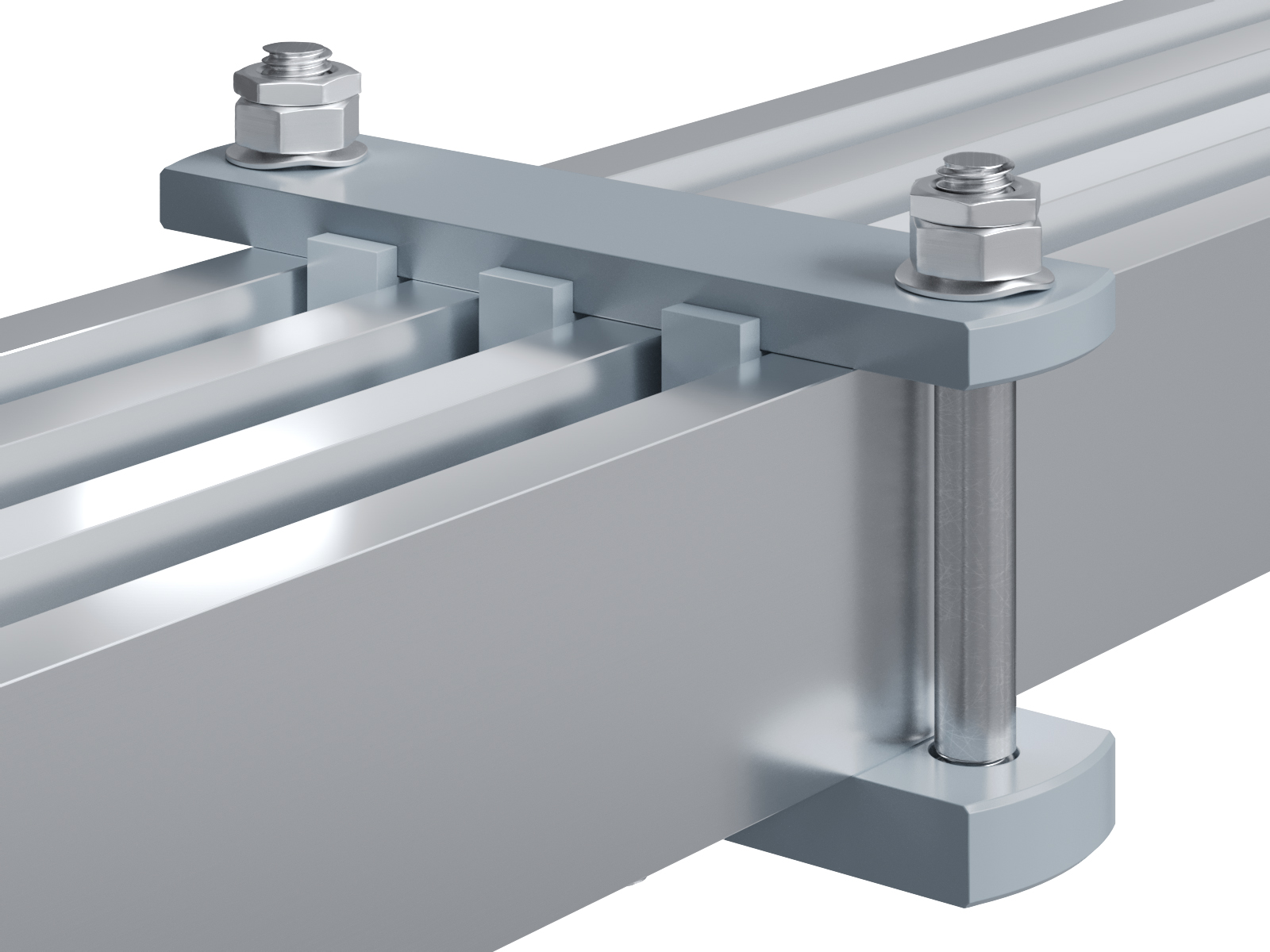 Schienenträger aus Aluminium zur Befestigung und Sicherung von Stromschienen aus Aluminium
