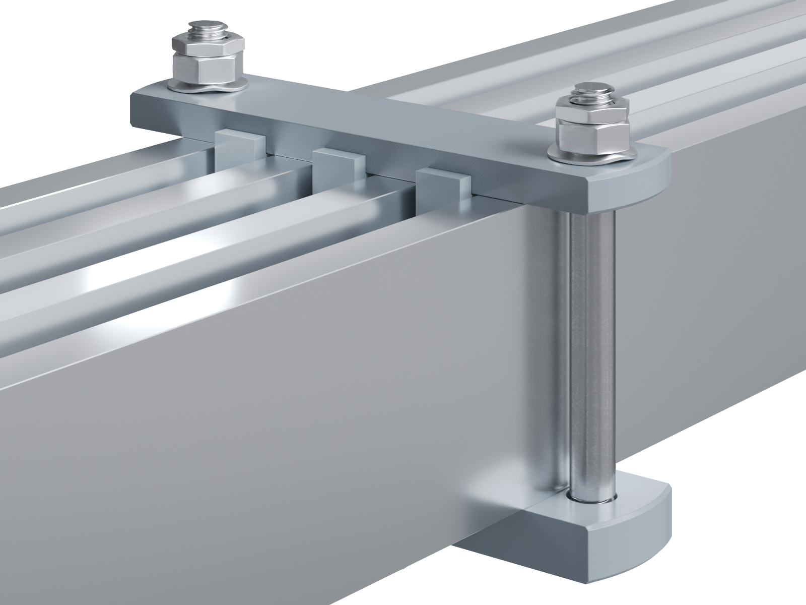 Schienenträger aus Aluminium zur Befestigung und Sicherung von Stromschienen aus Aluminium