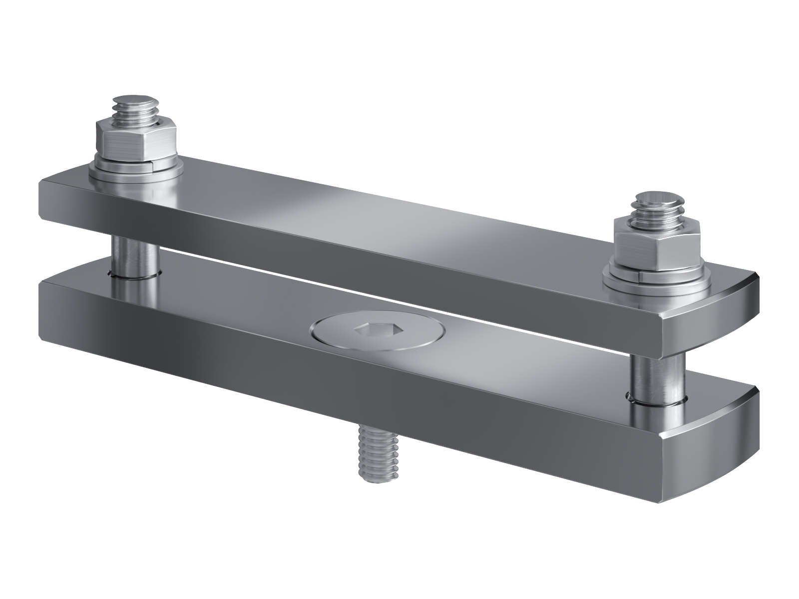 Schienenträger aus vernickeltem Messing zur Befestigung und Sicherung von Stromschienen aus Kupfer