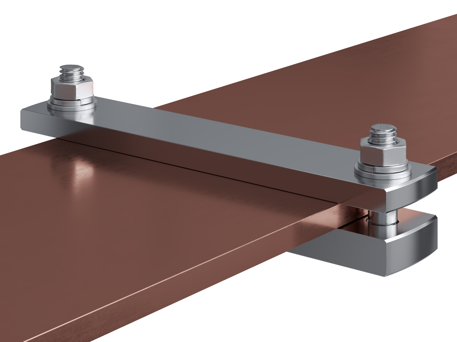Schienenträger aus vernickeltem Messing zur Befestigung und Sicherung von Stromschienen aus Kupfer