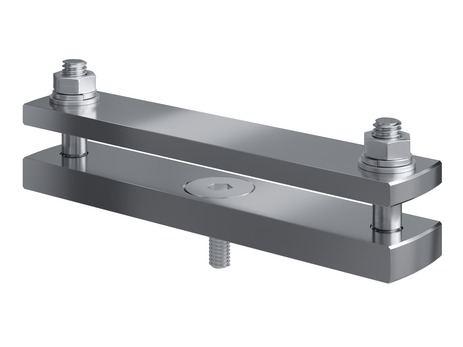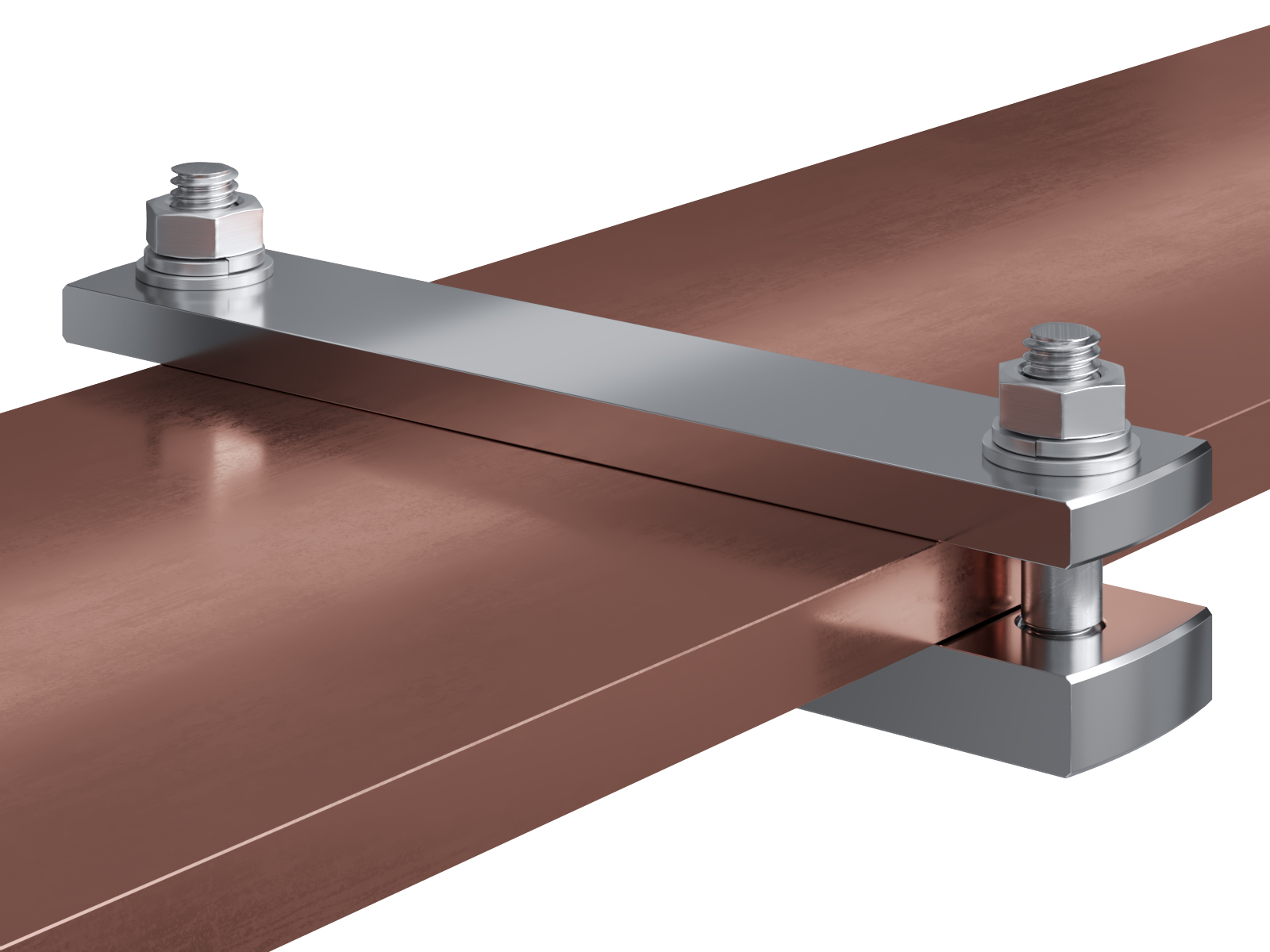 Schienenträger aus vernickeltem Messing zur Befestigung und Sicherung von Stromschienen aus Kupfer