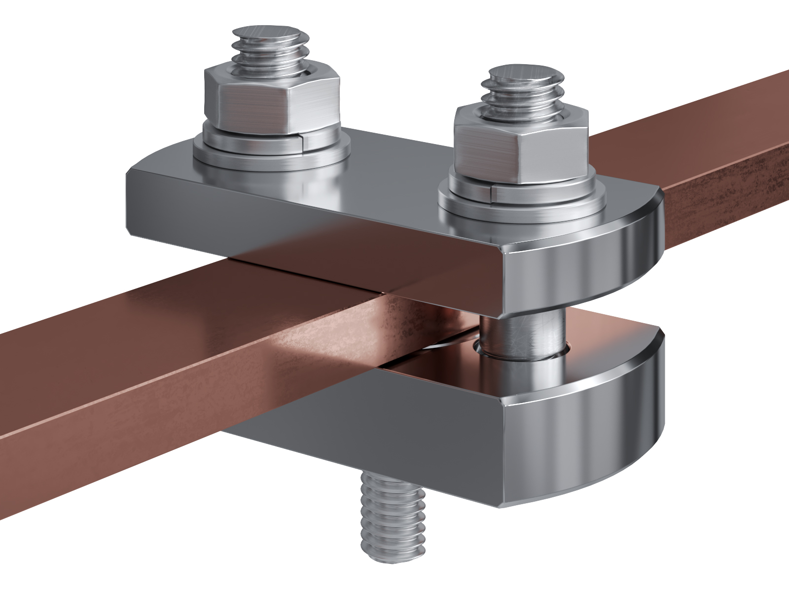 Schienenträger aus vernickeltem Messing zur Befestigung und Sicherung von Stromschienen aus Kupfer