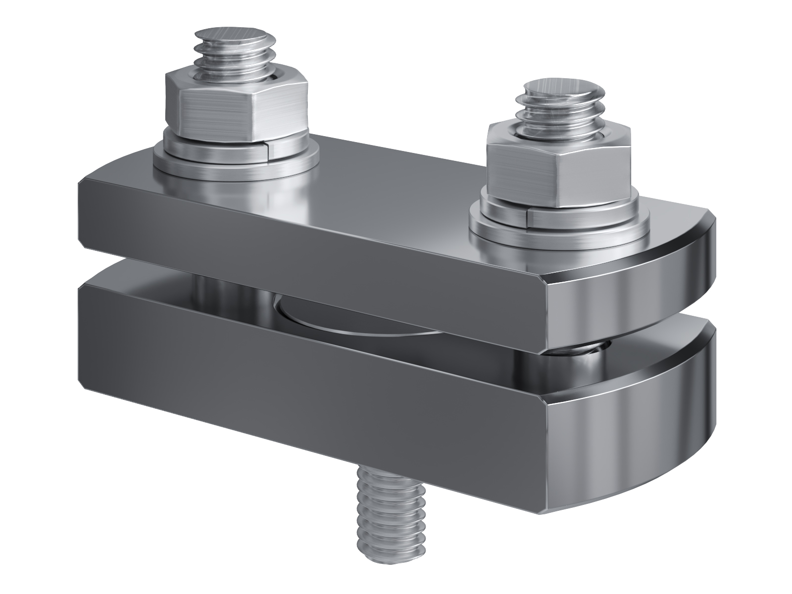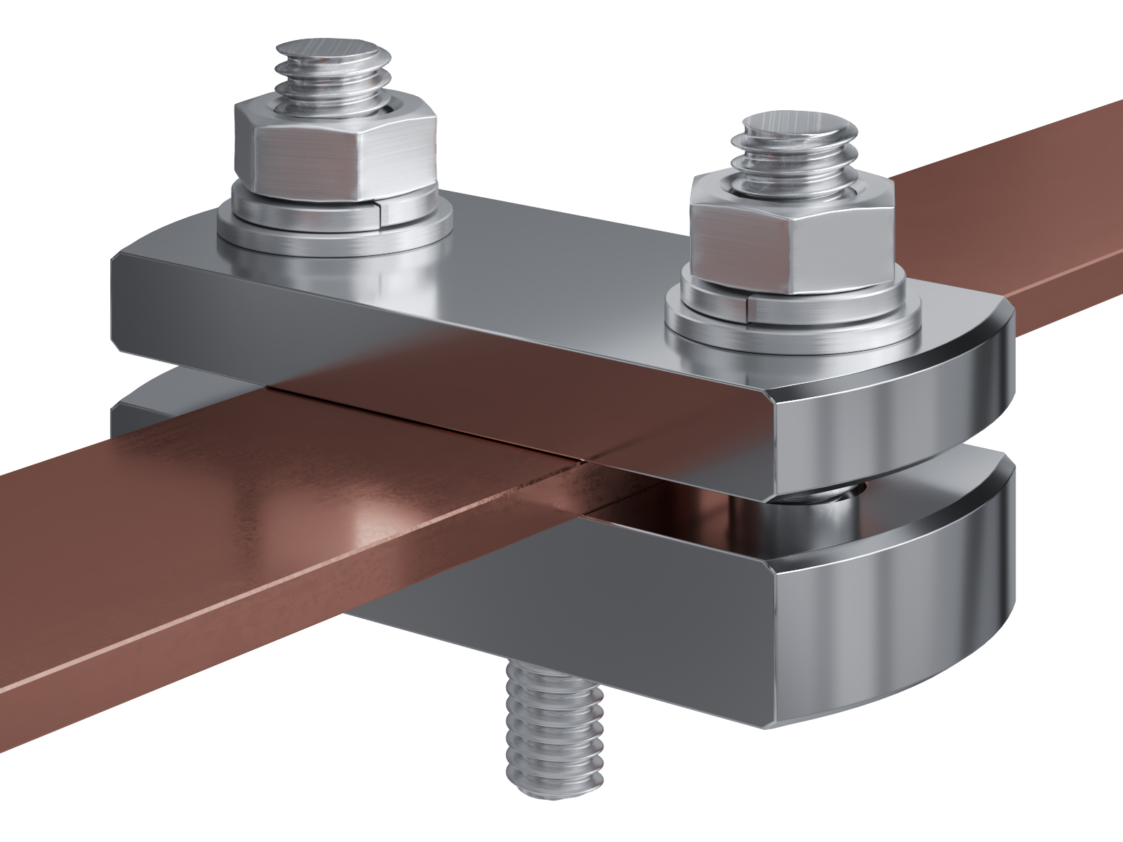 Schienenträger aus vernickeltem Messing zur Befestigung und Sicherung von Stromschienen aus Kupfer