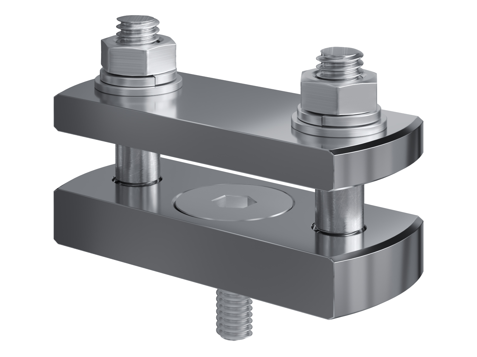 Schienenträger aus vernickeltem Messing zur Befestigung und Sicherung von Stromschienen aus Kupfer