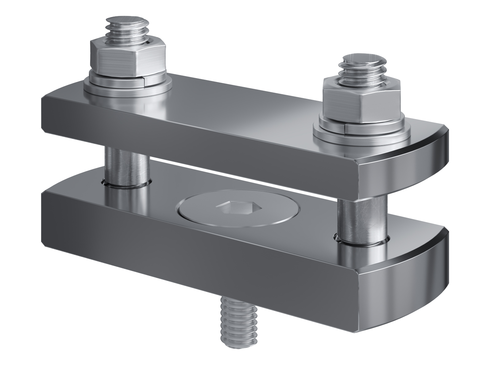 Schienenträger aus vernickeltem Messing zur Befestigung und Sicherung von Stromschienen aus Kupfer