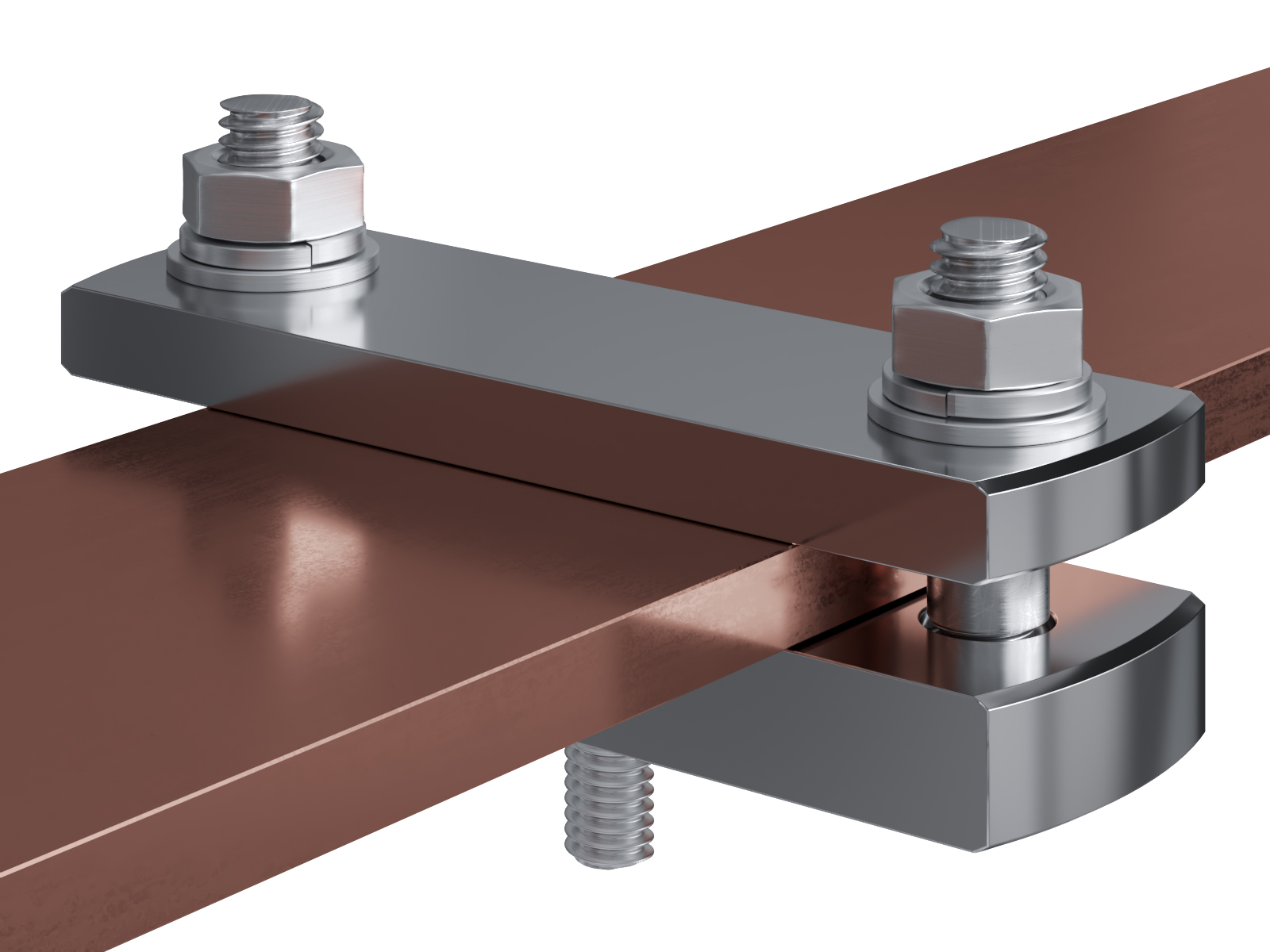 Schienenträger aus vernickeltem Messing zur Befestigung und Sicherung von Stromschienen aus Kupfer