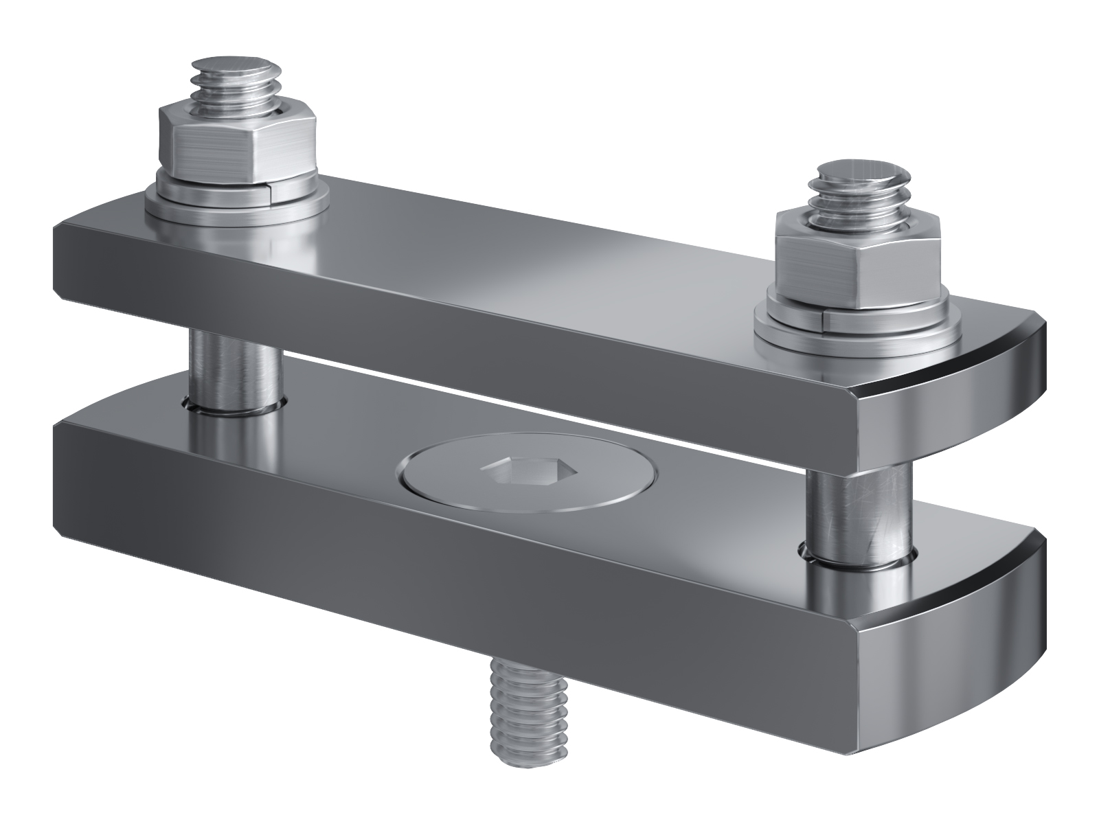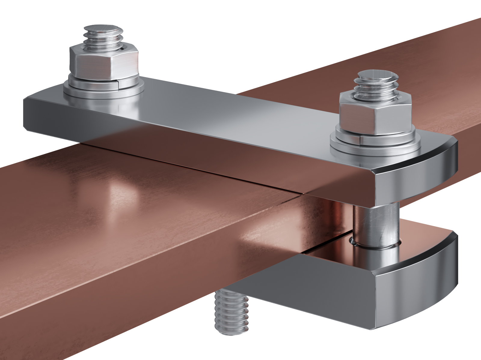 Schienenträger aus vernickeltem Messing zur Befestigung und Sicherung von Stromschienen aus Kupfer