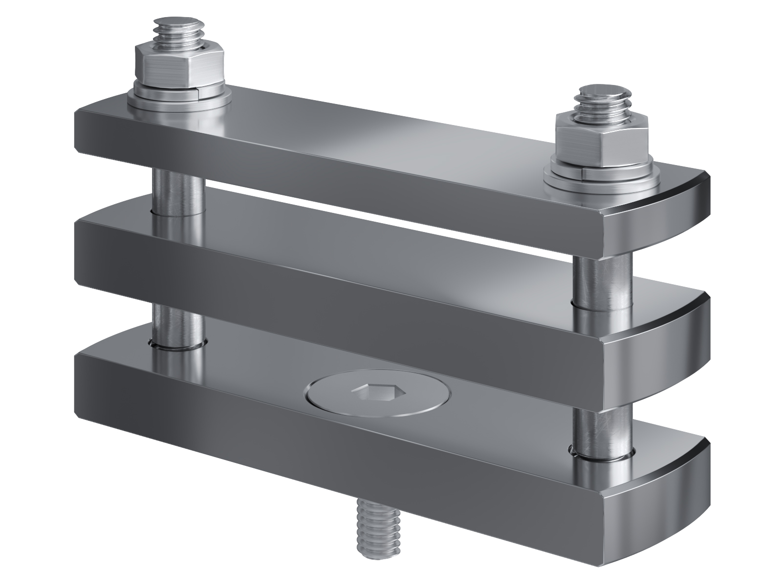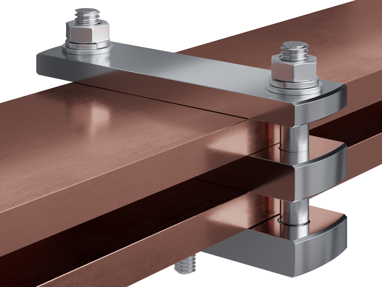 Schienenträger aus vernickeltem Messing zur Befestigung und Sicherung von Stromschienen aus Kupfer