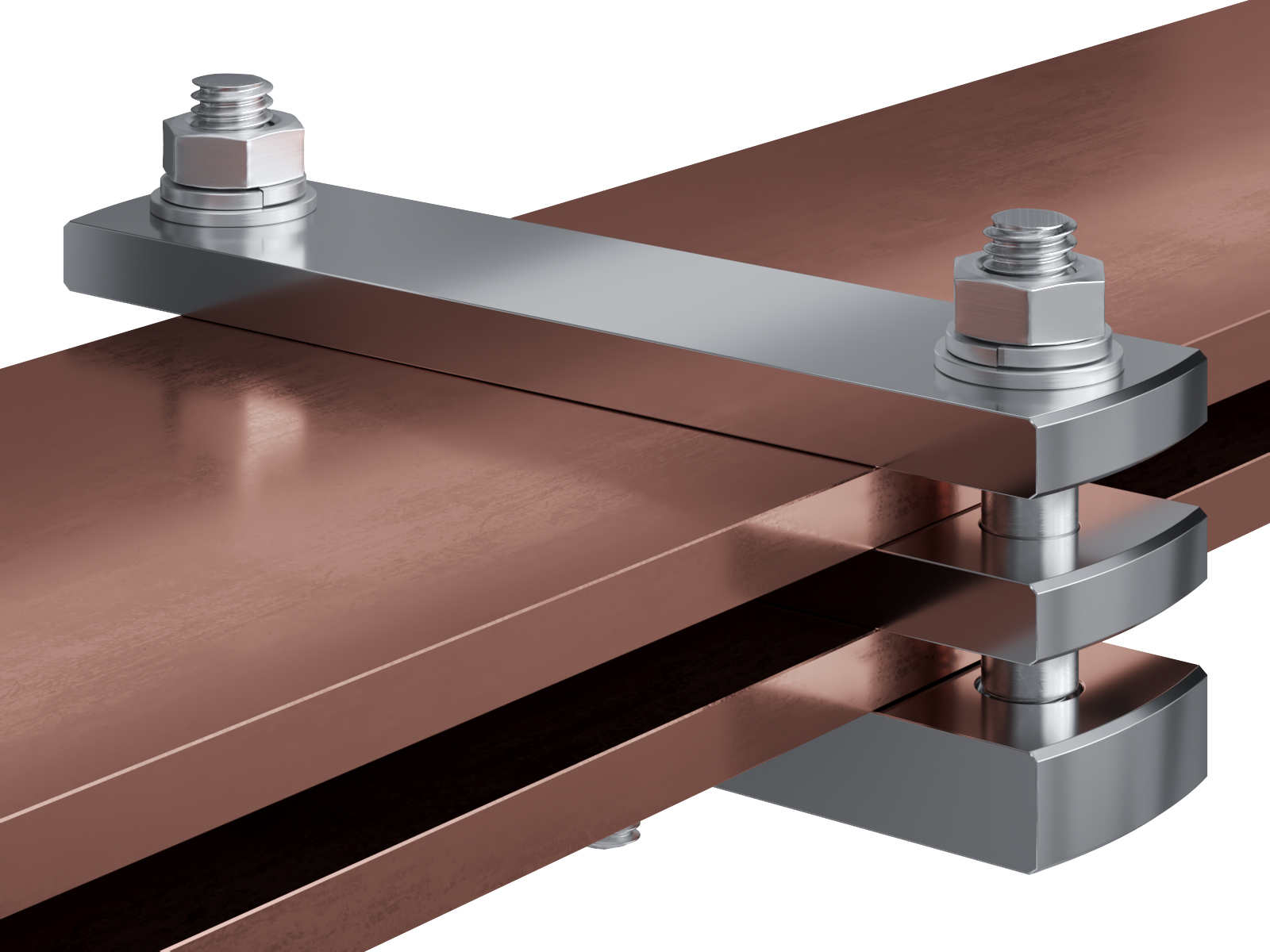 Schienenträger aus vernickeltem Messing zur Befestigung und Sicherung von Stromschienen aus Kupfer