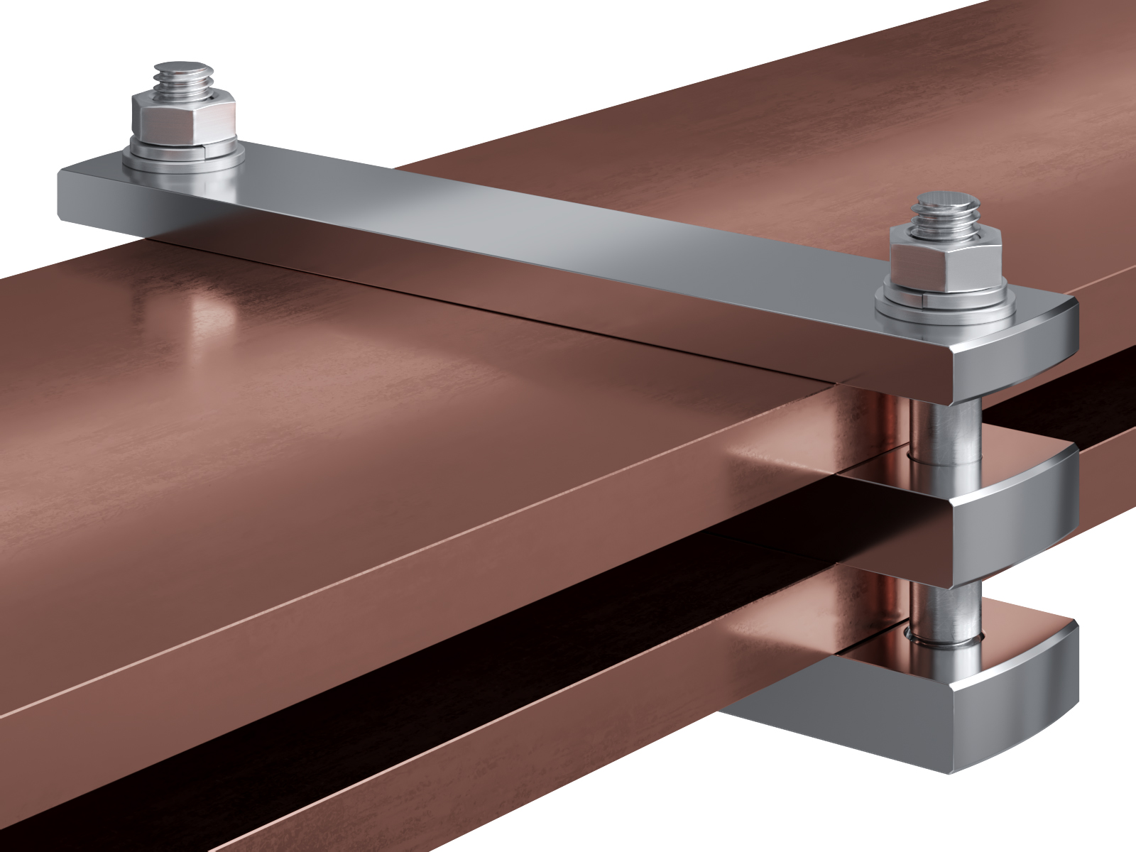 Schienenträger aus vernickeltem Messing zur Befestigung und Sicherung von Stromschienen aus Kupfer