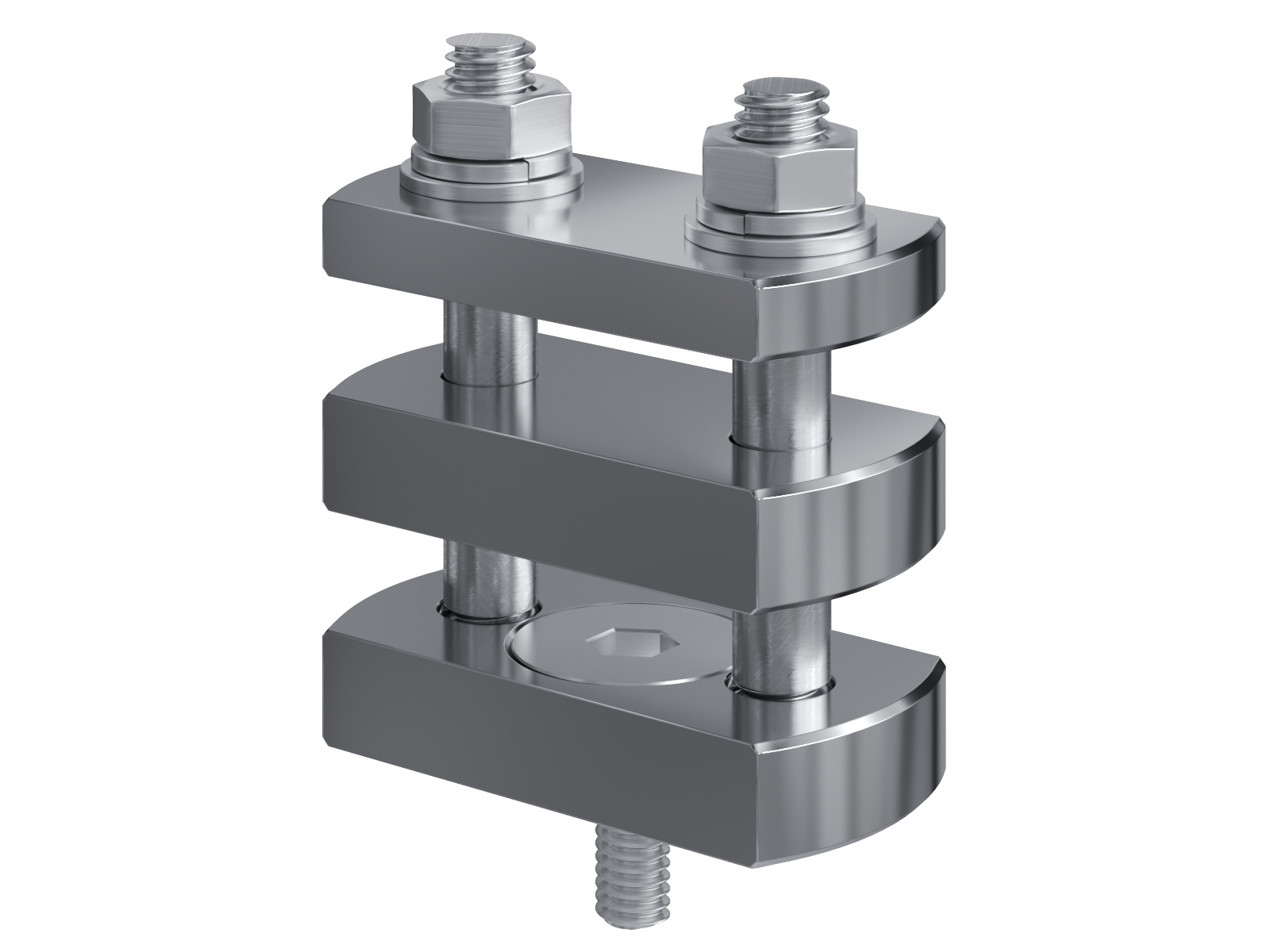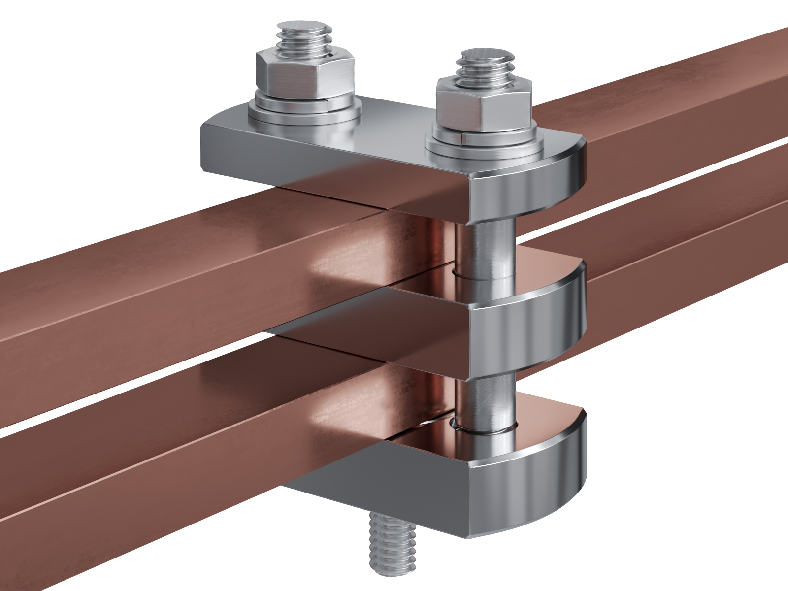 Schienenträger aus vernickeltem Messing zur Befestigung und Sicherung von Stromschienen aus Kupfer