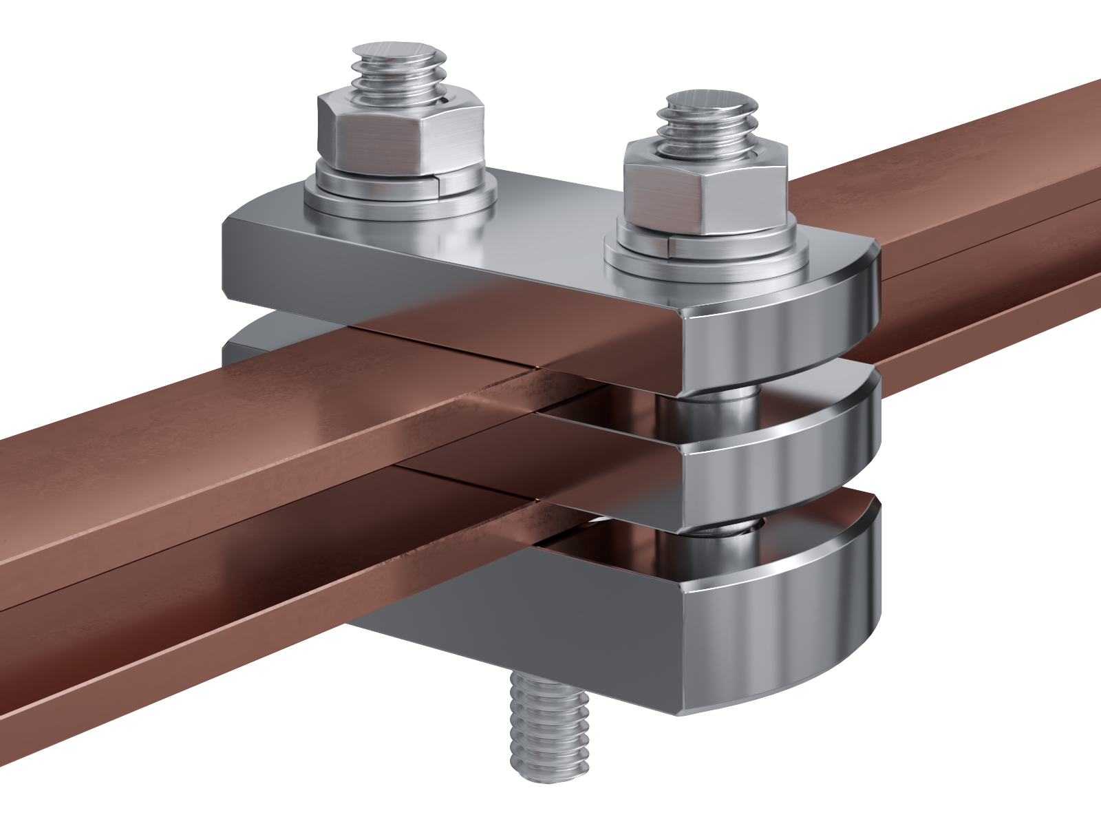 Schienenträger aus vernickeltem Messing zur Befestigung und Sicherung von Stromschienen aus Kupfer