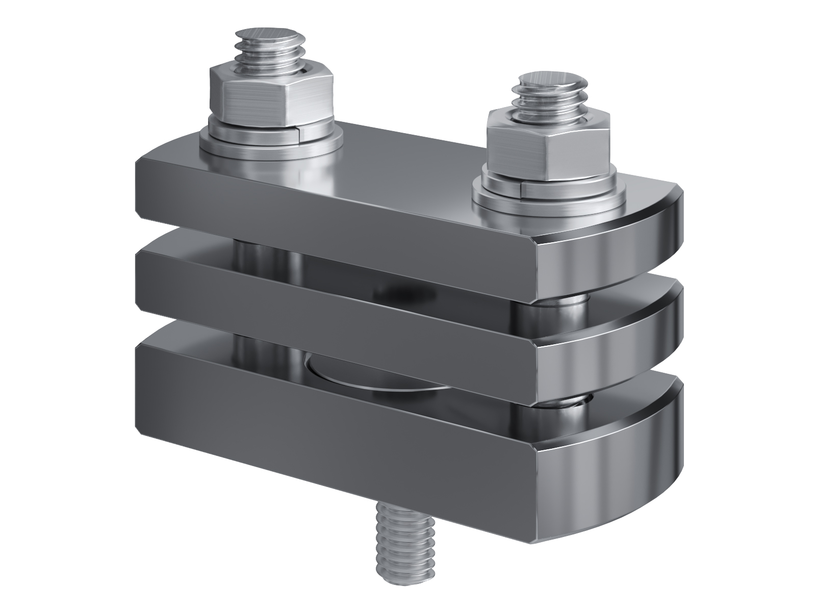 Schienenträger aus vernickeltem Messing zur Befestigung und Sicherung von Stromschienen aus Kupfer