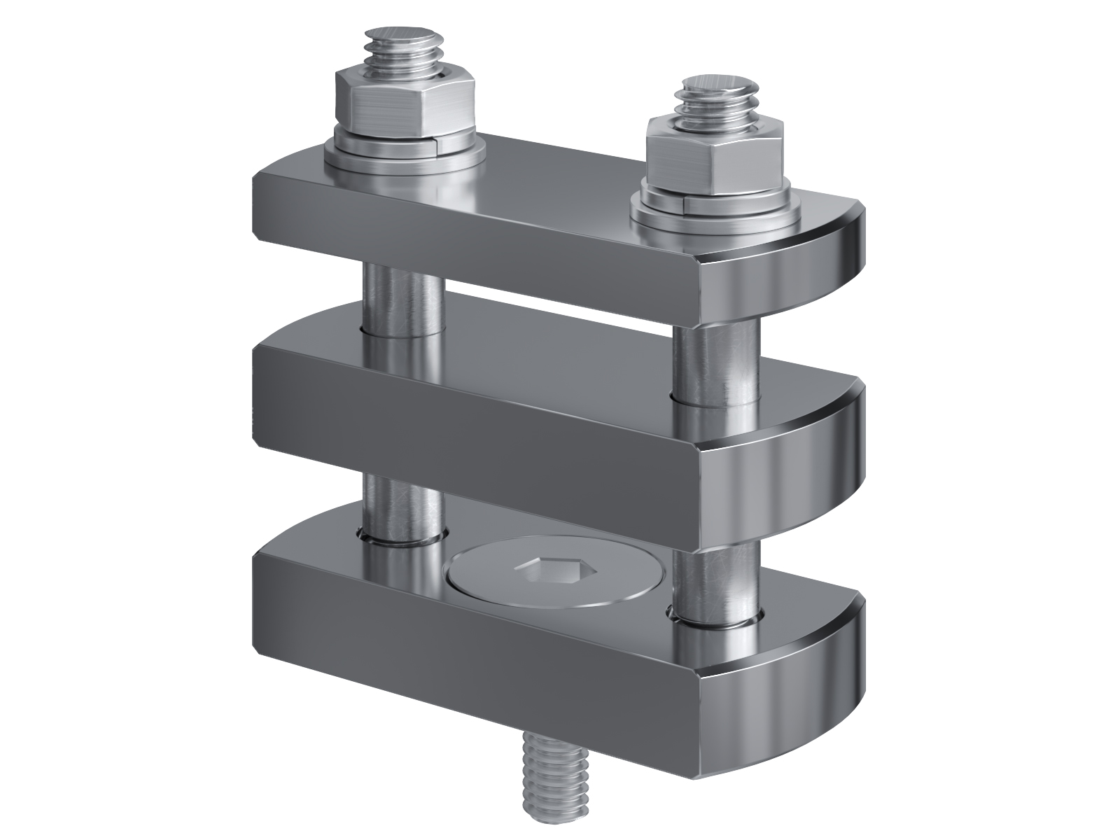 Schienenträger aus vernickeltem Messing zur Befestigung und Sicherung von Stromschienen aus Kupfer