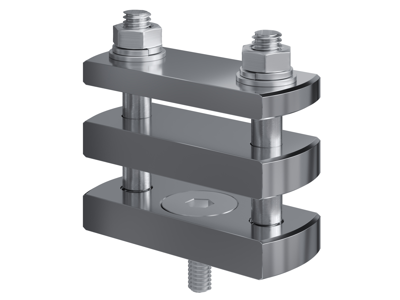 Schienenträger aus vernickeltem Messing zur Befestigung und Sicherung von Stromschienen aus Kupfer