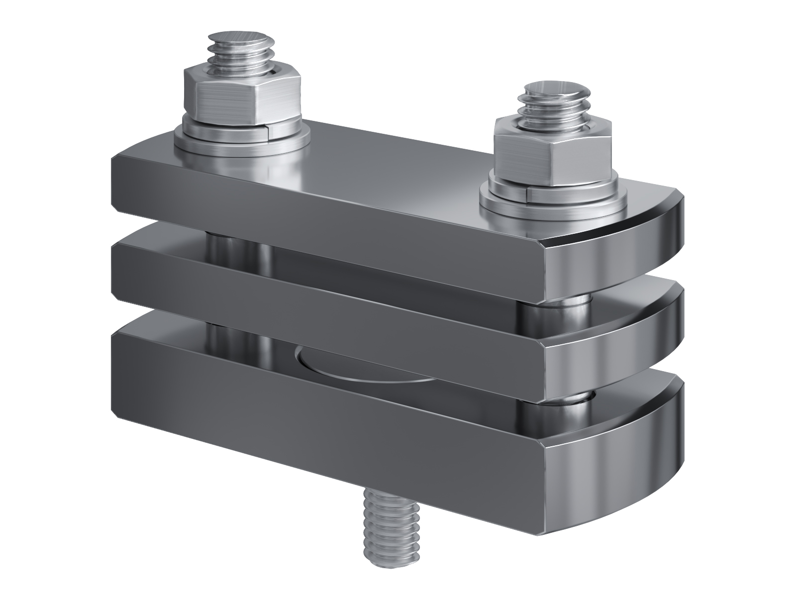 Schienenträger aus vernickeltem Messing zur Befestigung und Sicherung von Stromschienen aus Kupfer