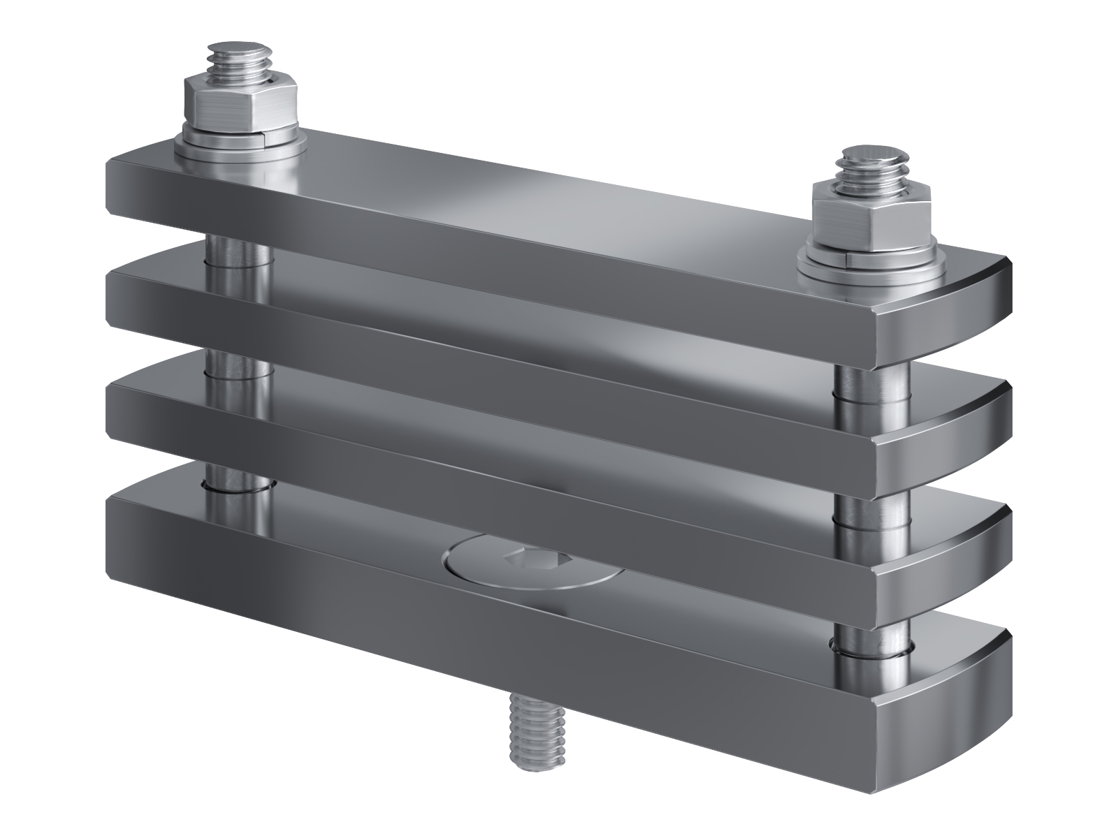 Schienenträger aus vernickeltem Messing zur Befestigung und Sicherung von Stromschienen aus Kupfer
