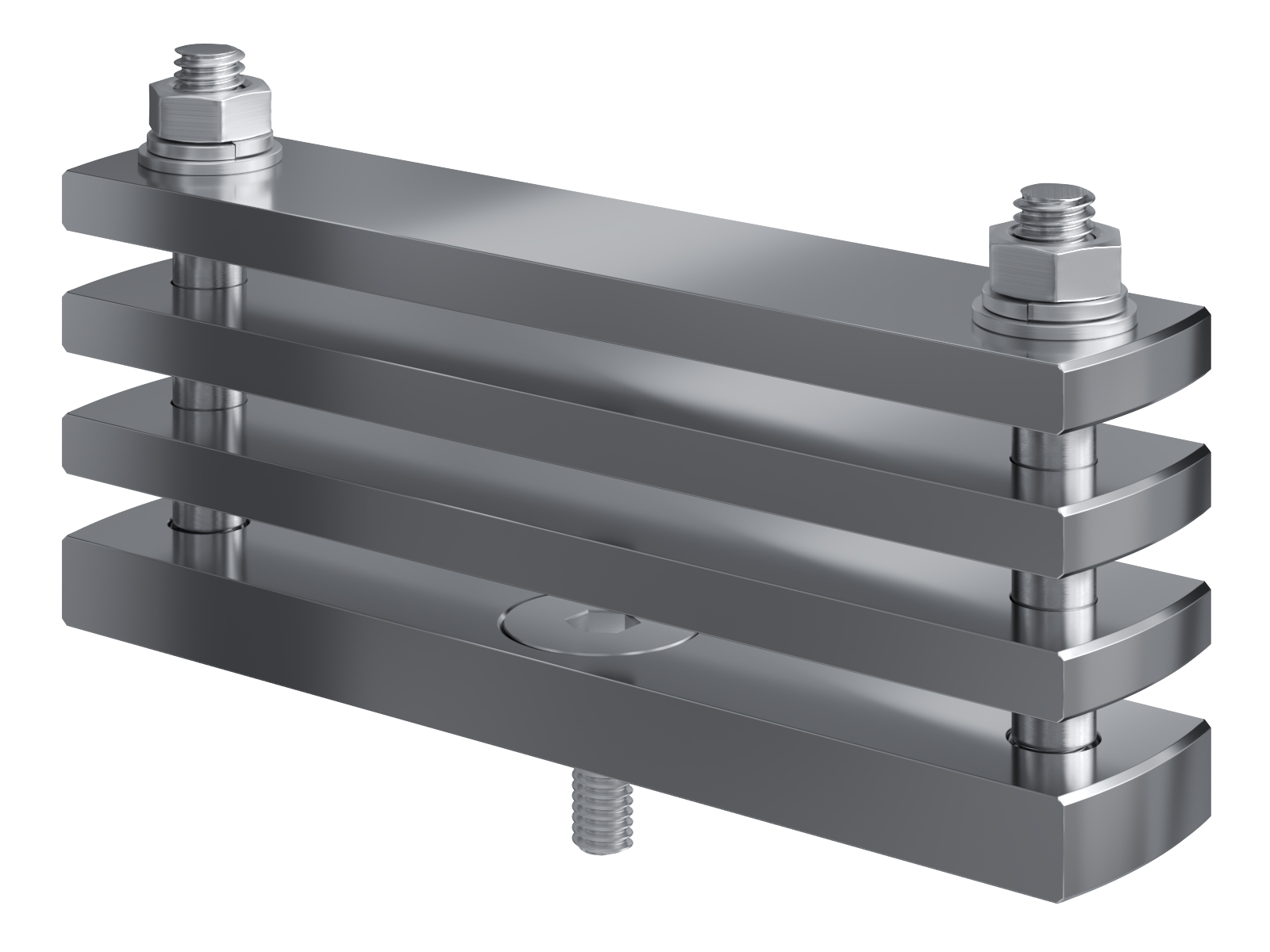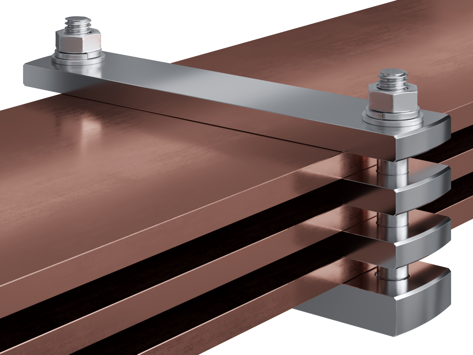 Schienenträger aus vernickeltem Messing zur Befestigung und Sicherung von Stromschienen aus Kupfer